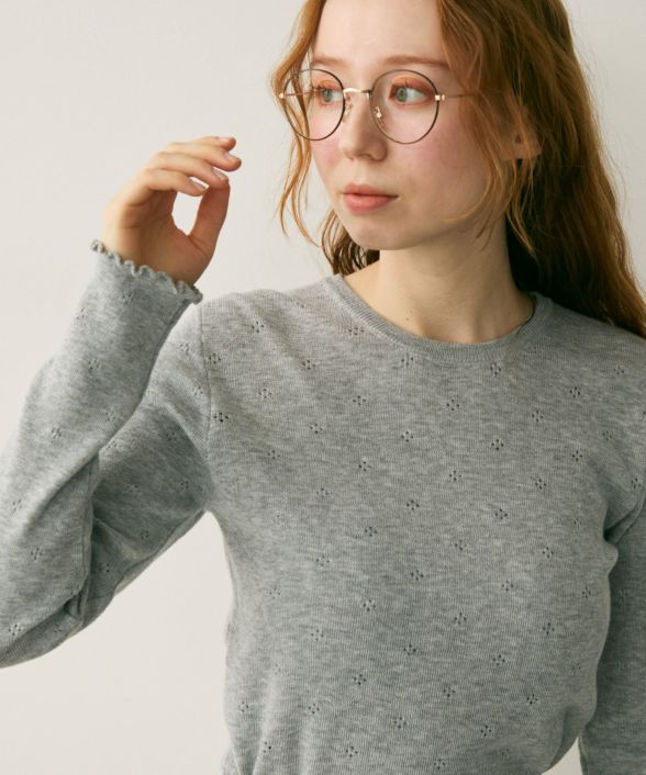【さりげない透かし編みデザインがポイントのニットトップス】
