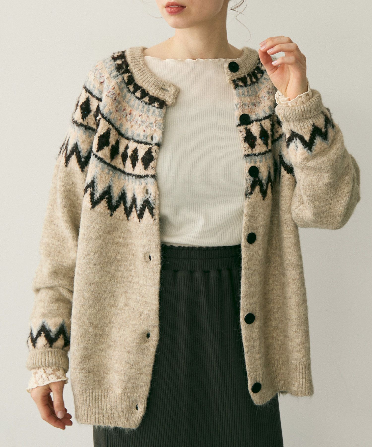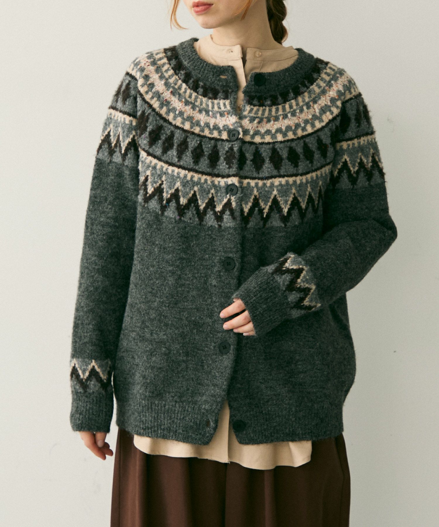 ノルディックミックスニットカーディガン[c1k3757b]