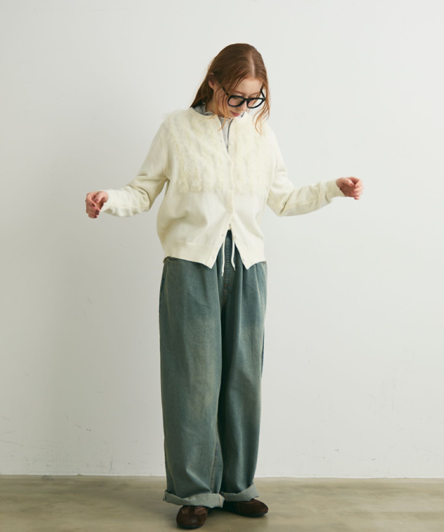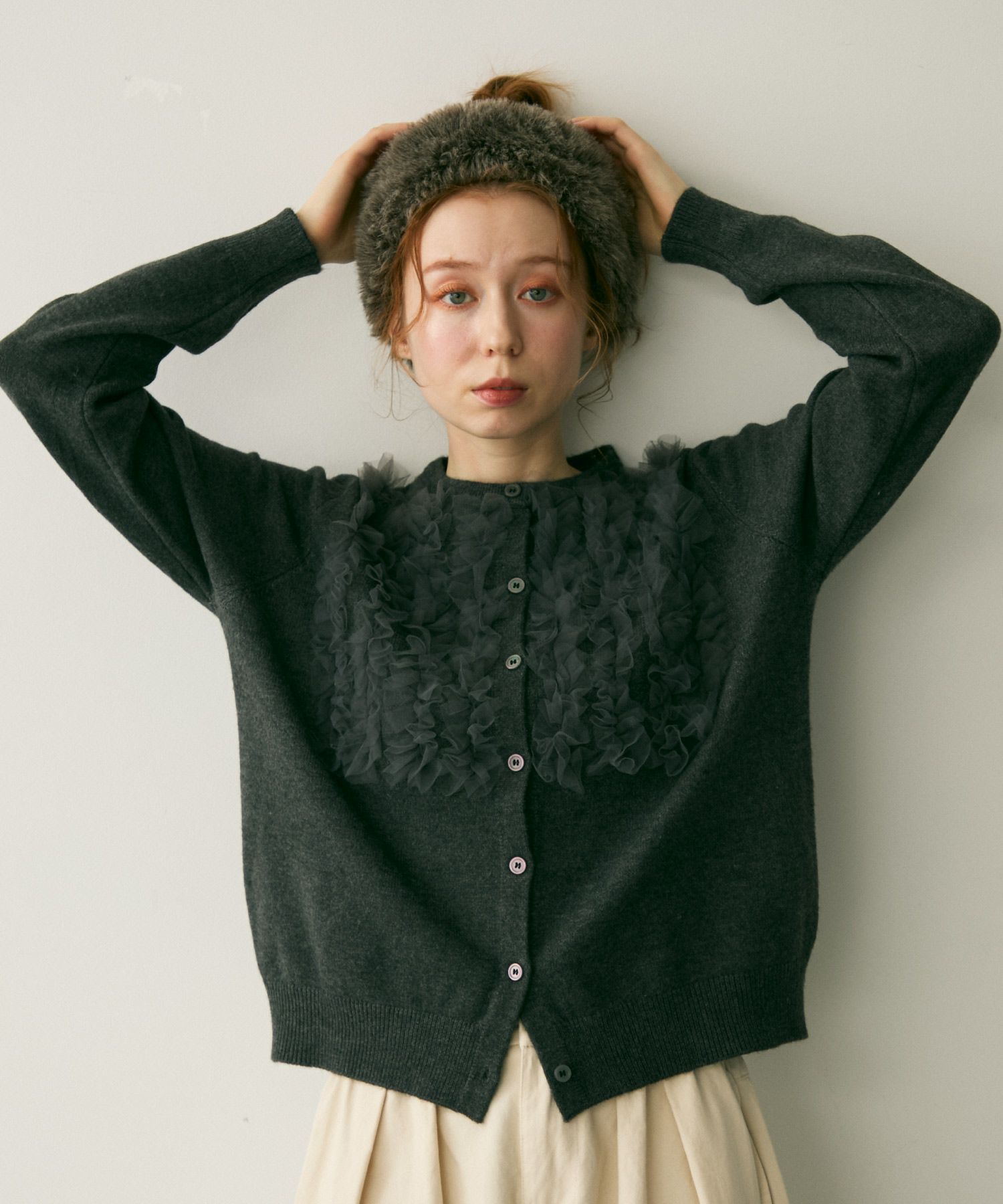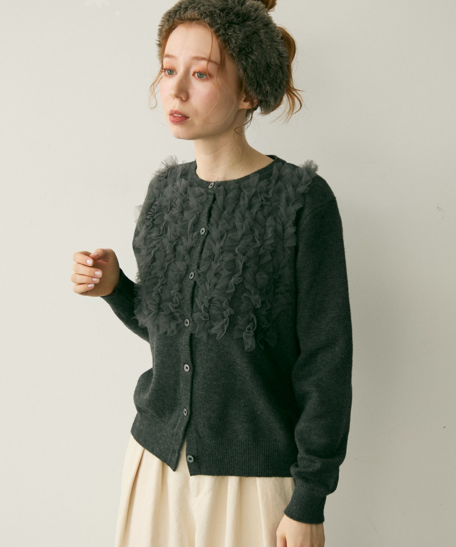 チュールフリルニットカーディガン[c1k3753b]