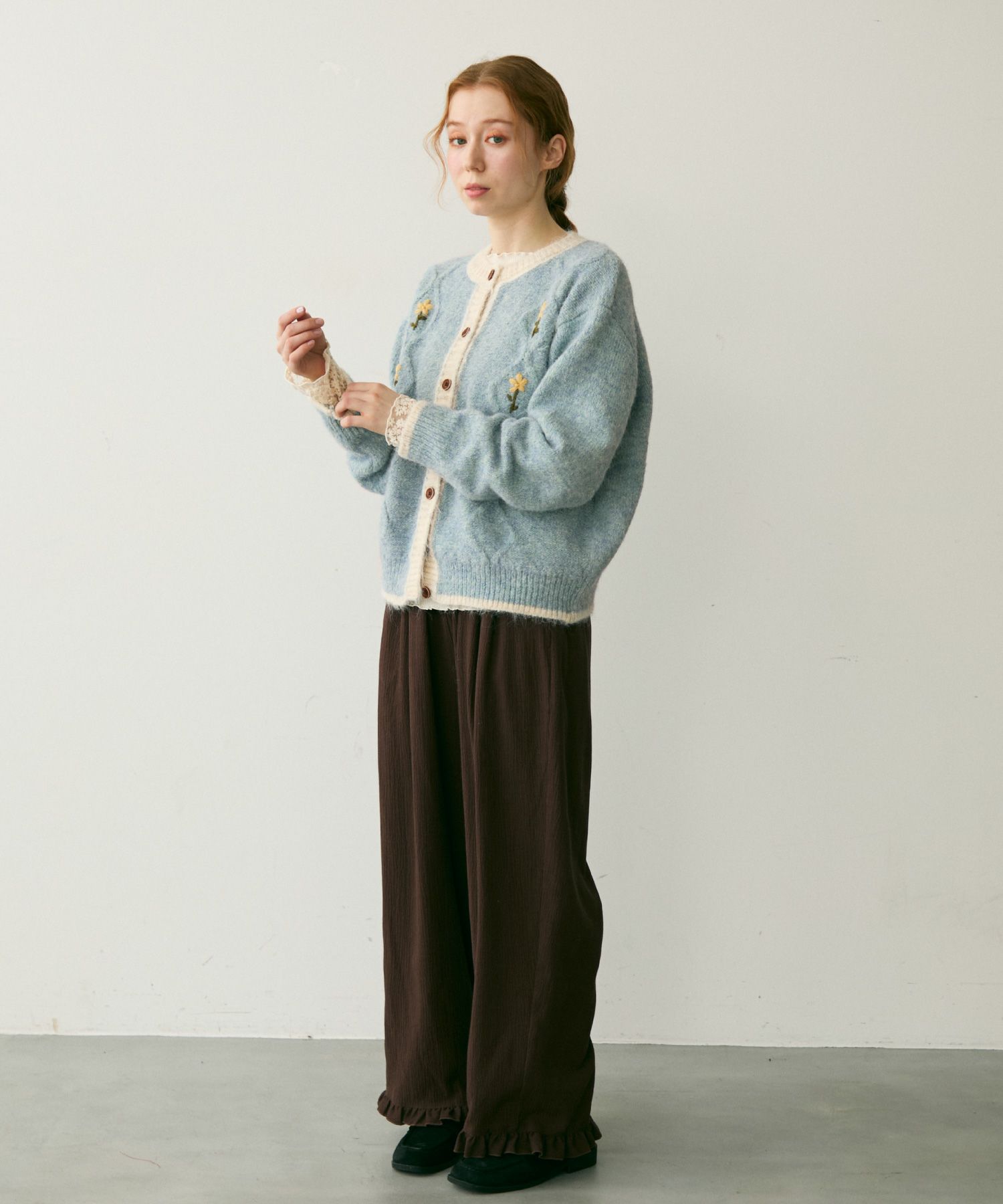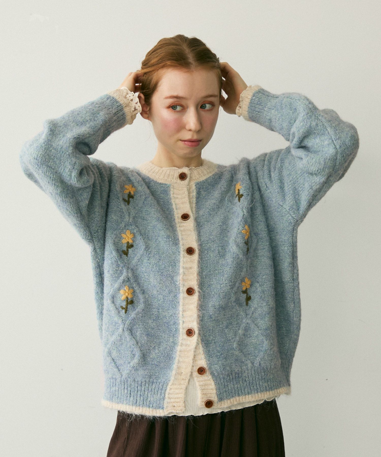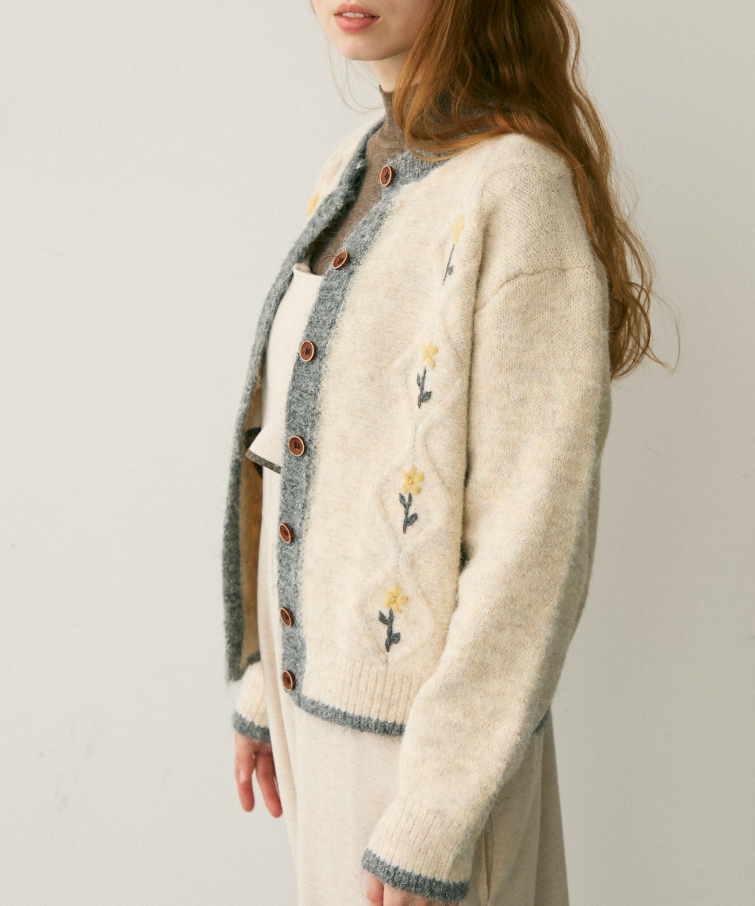 バイカラーフラワーニットカーディガン[c1k3759b]