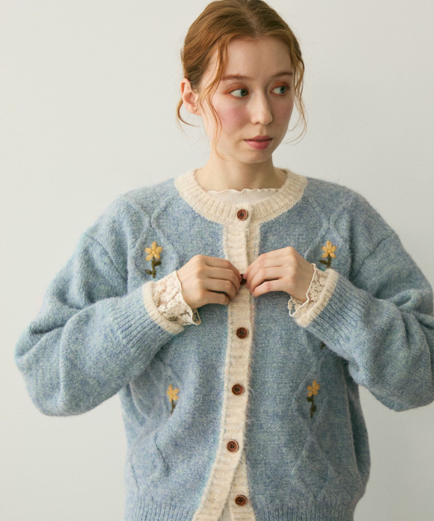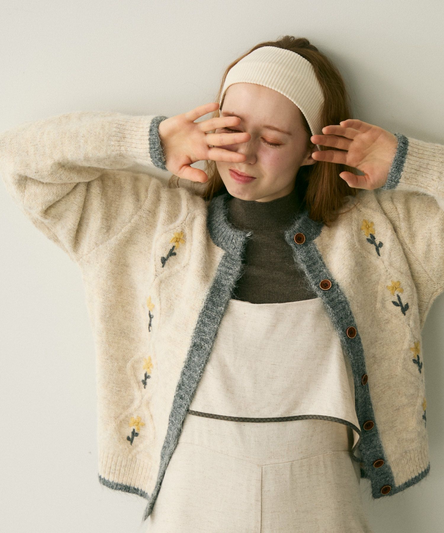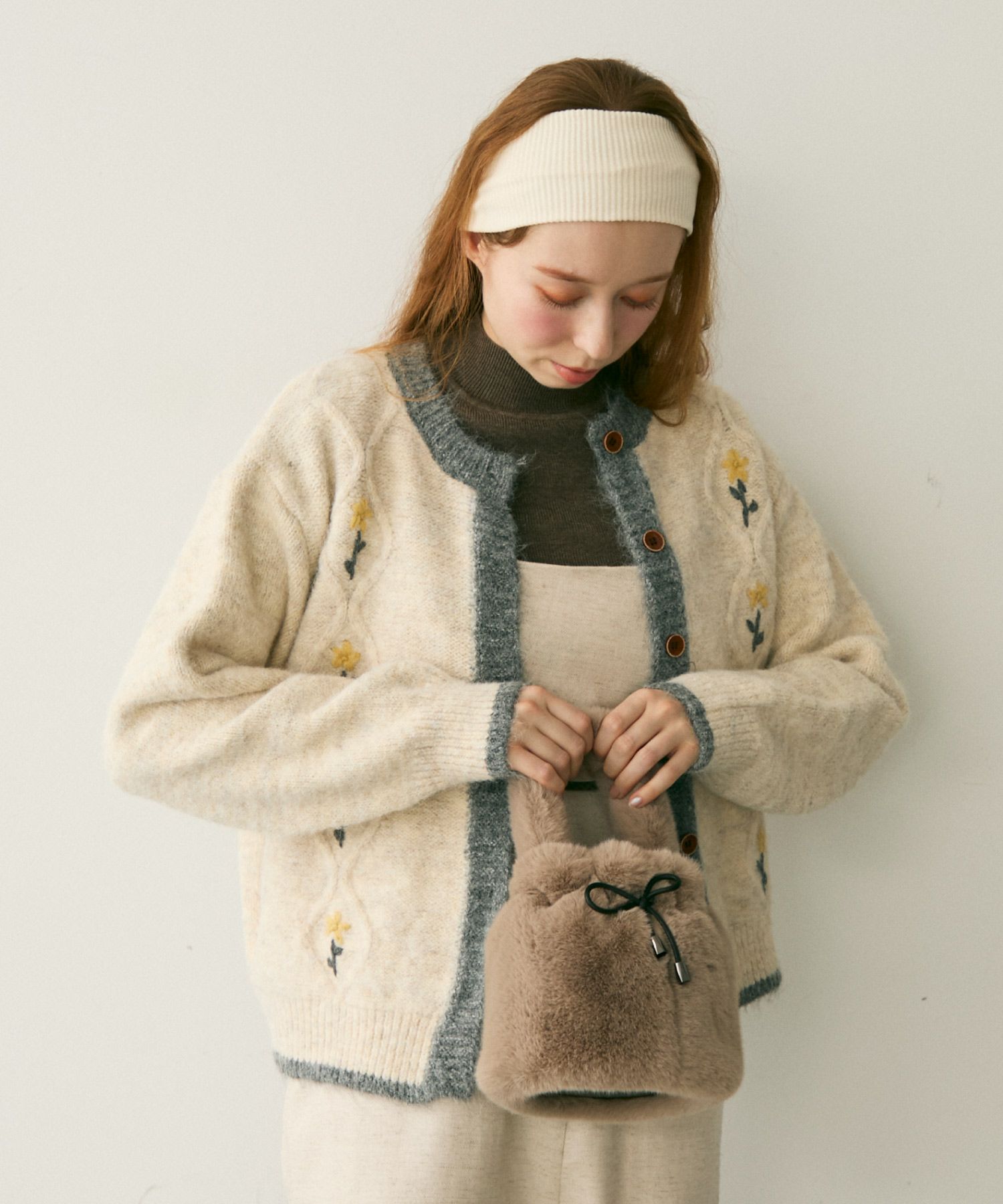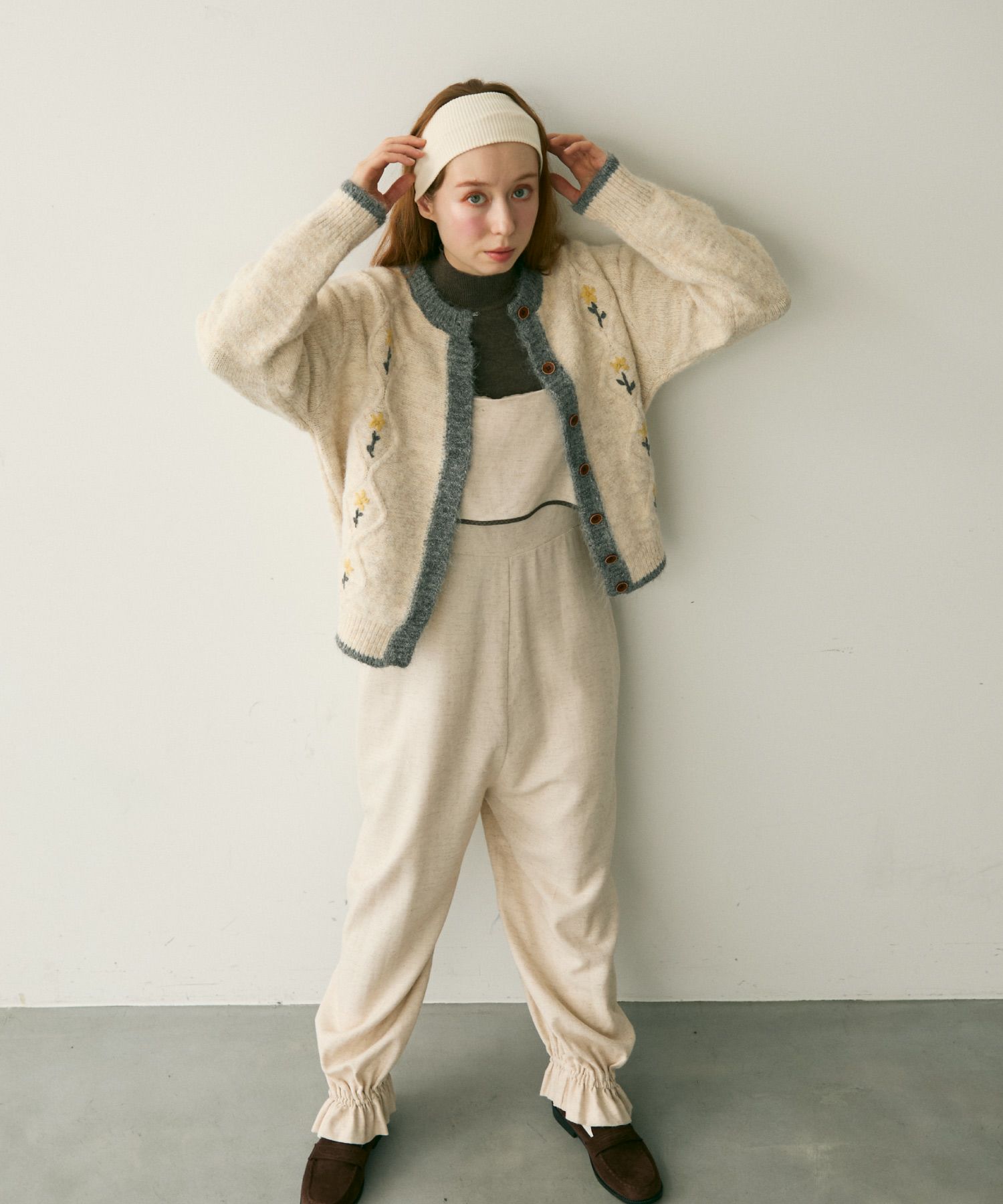 バイカラーフラワーニットカーディガン[c1k3759b]