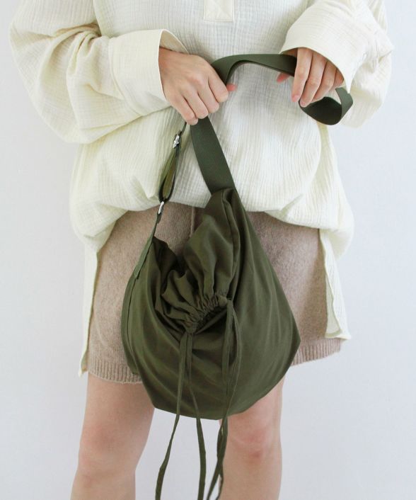 【くたっとしたシルエットがこなれた印象の巾着バッグ】