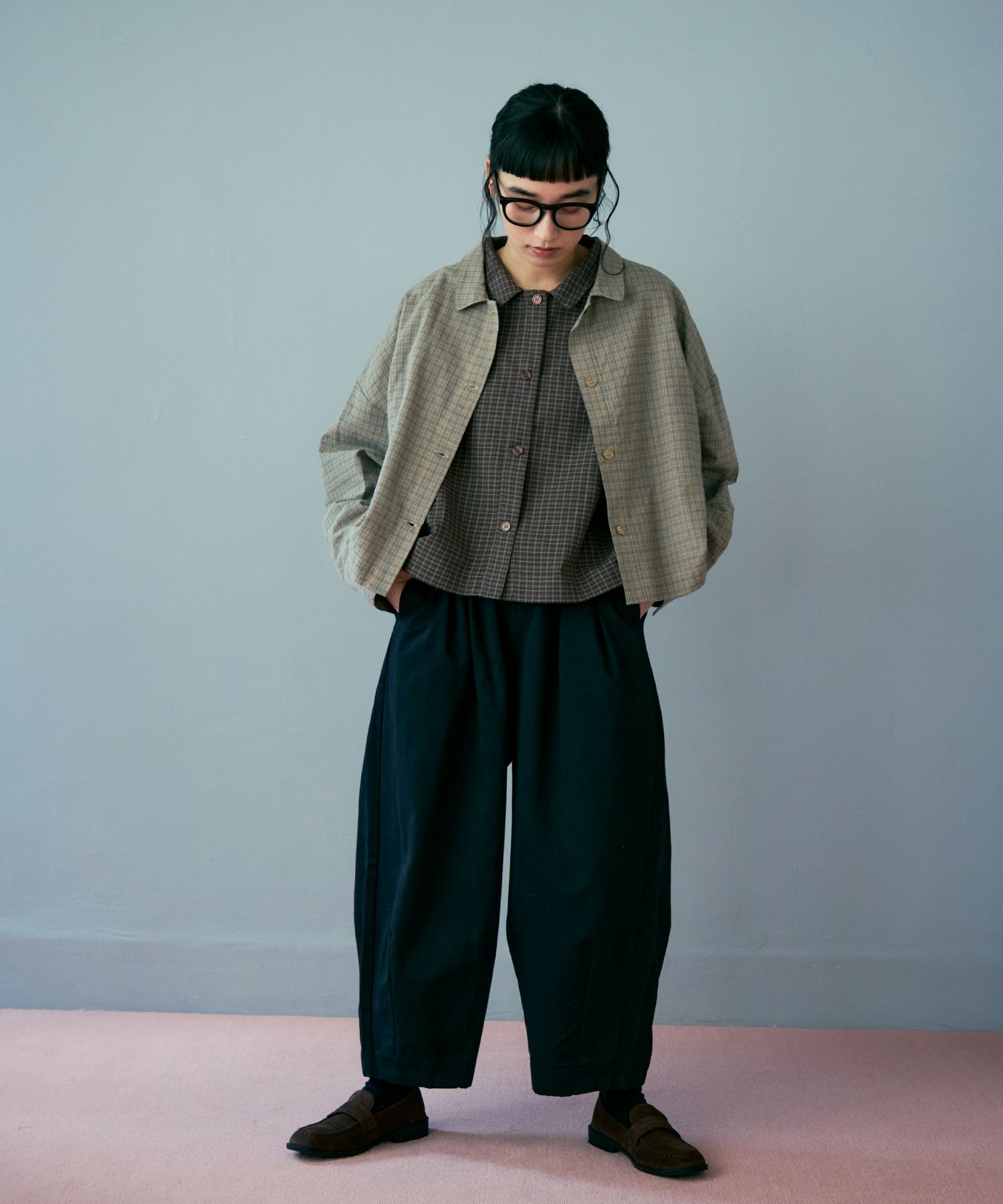 ダブルタックチェックカーブパンツ[c2k3880b]