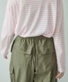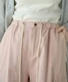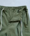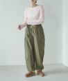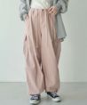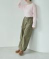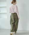・大きなカーゴポケットがポイント ・ウエストはゴム仕様、ウエストコードはそのまま垂らしても、リボンで結んでも◎ ・裾はダーツが入ったカーブシルエット ・ドロストコードが付いており絞りもストレートもどちらでも楽しめるデザイン ・くたっとした柔らかいコットン素材 ・ウエストはスナップボタンで珍しく魅力的