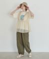 Tシャツとの大人カジュアルなスタイリングはもちろん、 チュニックやシャツに合わせてカジュアルダウンアイテムとしても◎ ボリューム感のあるシルエットなのでショート丈のトップスと相性良く着られます。 合わせるアイテム次第でシーズン問わず活躍の1枚。