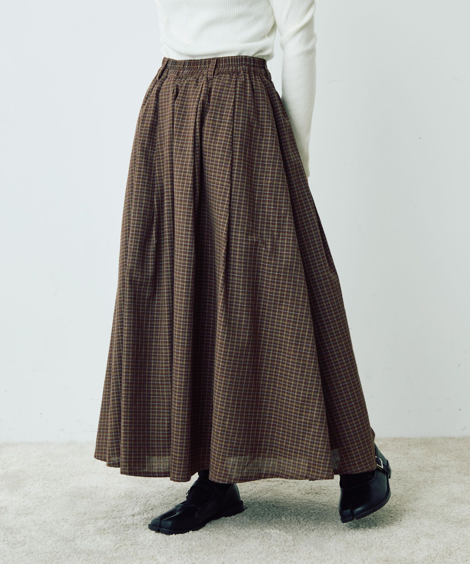 ダブルタックチェックカーブパンツ[c2k3880b]