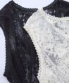 ・チュール素材にシックな花柄刺繍が施されたレース素材で大人な雰囲気をプラス ・衿ぐりとアームホールにはさりげないナチュラルレースで縁取り ・Vネックデザインで顔周りがすっきり見えるデザイン ・ストレートシルエットのロング丈でスタイルアップも◎ ※ブラックは染めの工程上、短めの丈になっています。