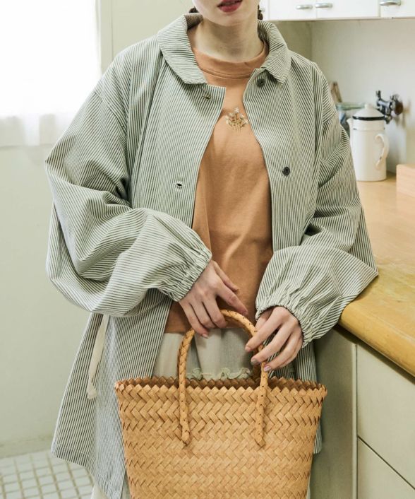 【デニムとストライプの春らしいライトアウター】