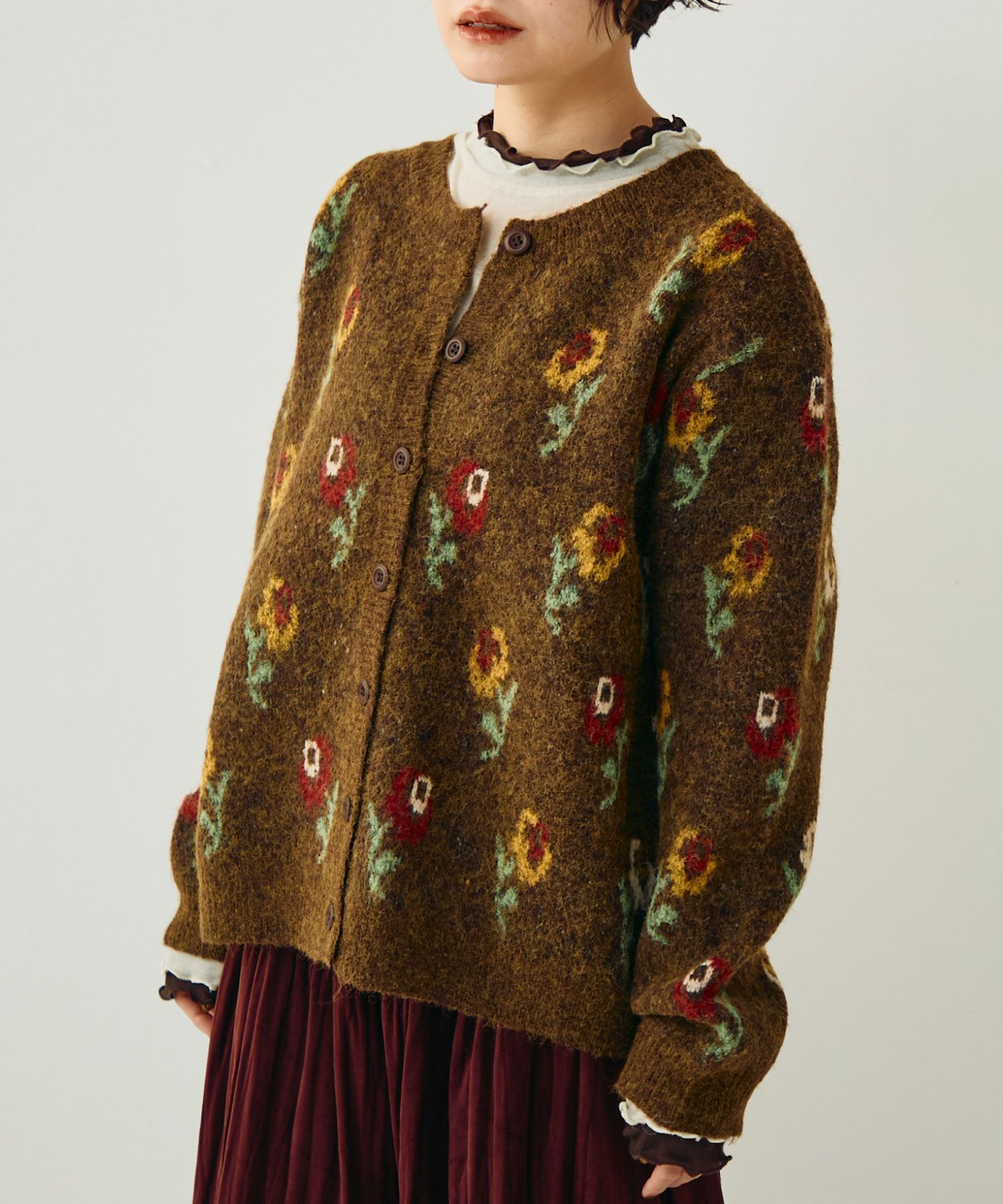 フラワー刺繍ニットカーディガン[c1k3748b]