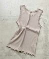 Crisp定番人気のインナーがリニューアルして登場! 春夏シーズンに大活躍のリブタンク。 程よいフィット感とネックラインに施した繊細なレースが女性らしさを演出してくれます。 前回よりも着丈を長めにし、腰回りもしっかりとカバーした安心感のある着心地です。 インナーとしてはもちろん、襟ぐりが大きく開いたトップスや羽織りアイテムなどから覗かせたスタイリングにもおすすめ。 シーズンムード漂う爽やかなカラー展開も魅力的◎ シンプルで使い勝手も良く色違いで揃えたくなる1枚です。