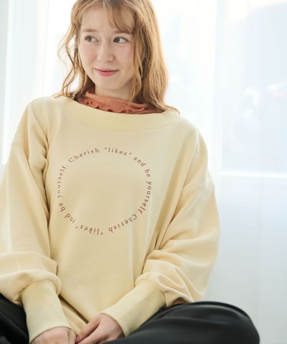 AWのコンセプトロゴを刺繍したスウェットシリーズ。 太めのリブがポイントのボートネックでカジュアル過ぎず抜け感をプラス。 アームホールのステッチや切りっぱなしの裾で古着感を演出しています。 前はぷくっと立体感のあるロゴ刺繍、後ろはサークルデザインのラバープリントで気分に合わせて前後2wayで着用できます。 気になるヒップラインが隠れるミドル丈で体型カバーしてくれるのも嬉しい◎ ロングスカートやニットパンツなど合わせるアイテムを選ばずに着回せる1枚です。