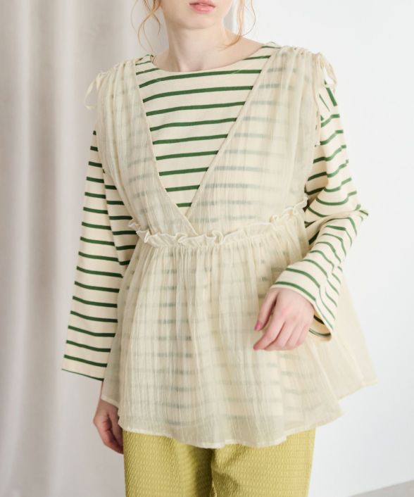 1枚でさらっとメイン使いするのはもちろん、 ブラウスやスウェット、ワンピースのインナーとしてレイヤードを楽しむのもおすすめです。