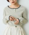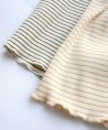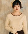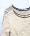 ・アイボリーカラーをベースに秋らしいカラー配色のボーダー ・バイカラーの衿ぐりがアクセント、細めのパイピングが華奢な印象をプラス ・さりげないヘンリーデザインでカジュアさも○ ・伸縮性が良く、程よい厚みのあるリブ生地を使用し、ストレスフリーな着心地に