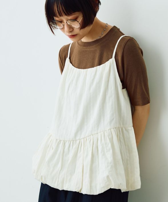 【アシンメトリーなバルーンシルエットが目を惹く花柄キャミトップス】