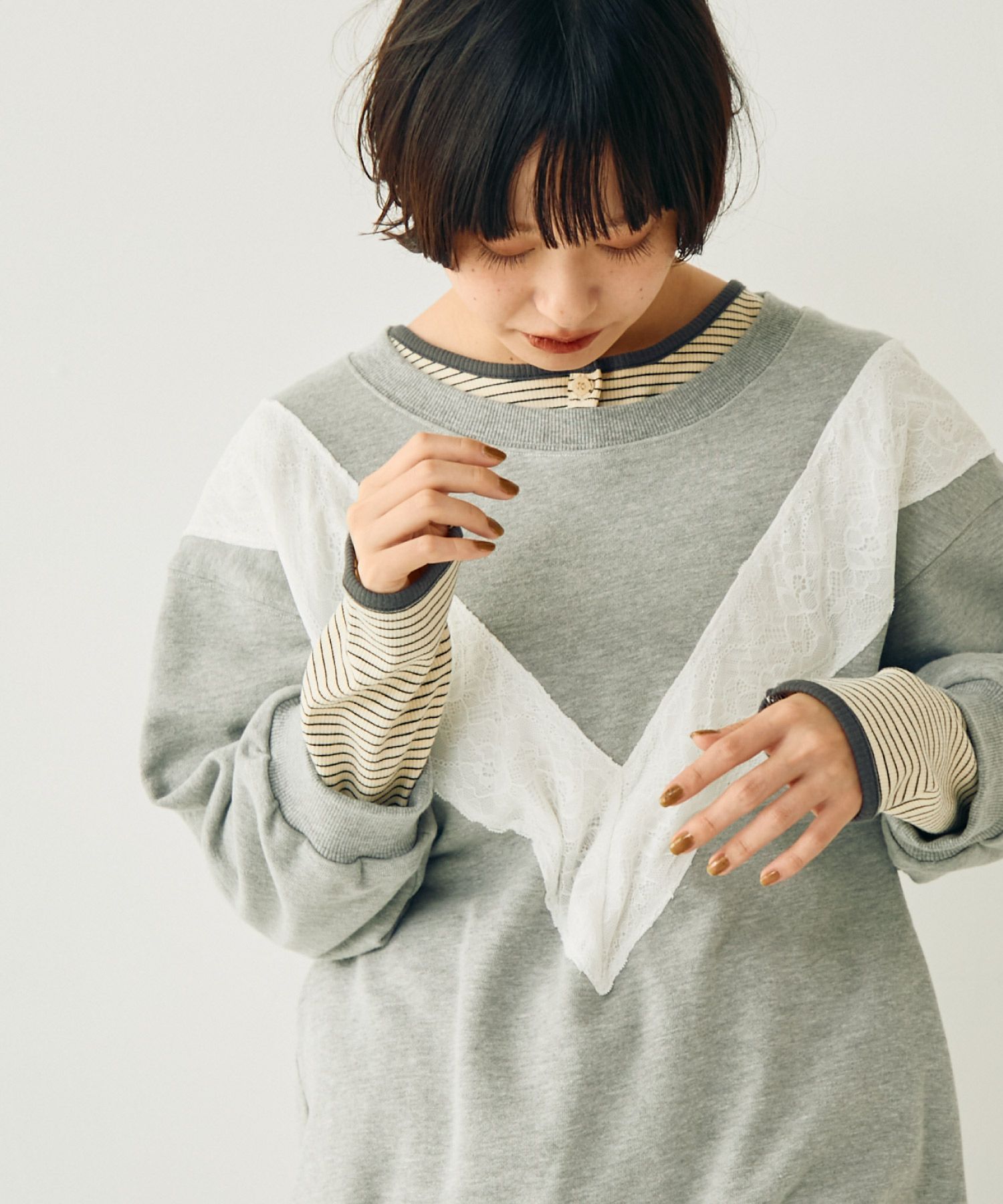 ヴィンテージカットワークデザインスウェット[c1k3786]