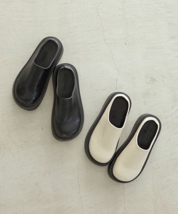 ・ぽってりとした丸みのあるフォルムがモードになりすぎず、スリッパのようにさっと履けるデザインがカジュアル感をプラス ・アウトソール全体に厚みがあるので、さりげなくスタイルアップしながらもフラットシューズのような安定感 ・上質なツヤ感のある合成皮革を使用し、上品な雰囲気に