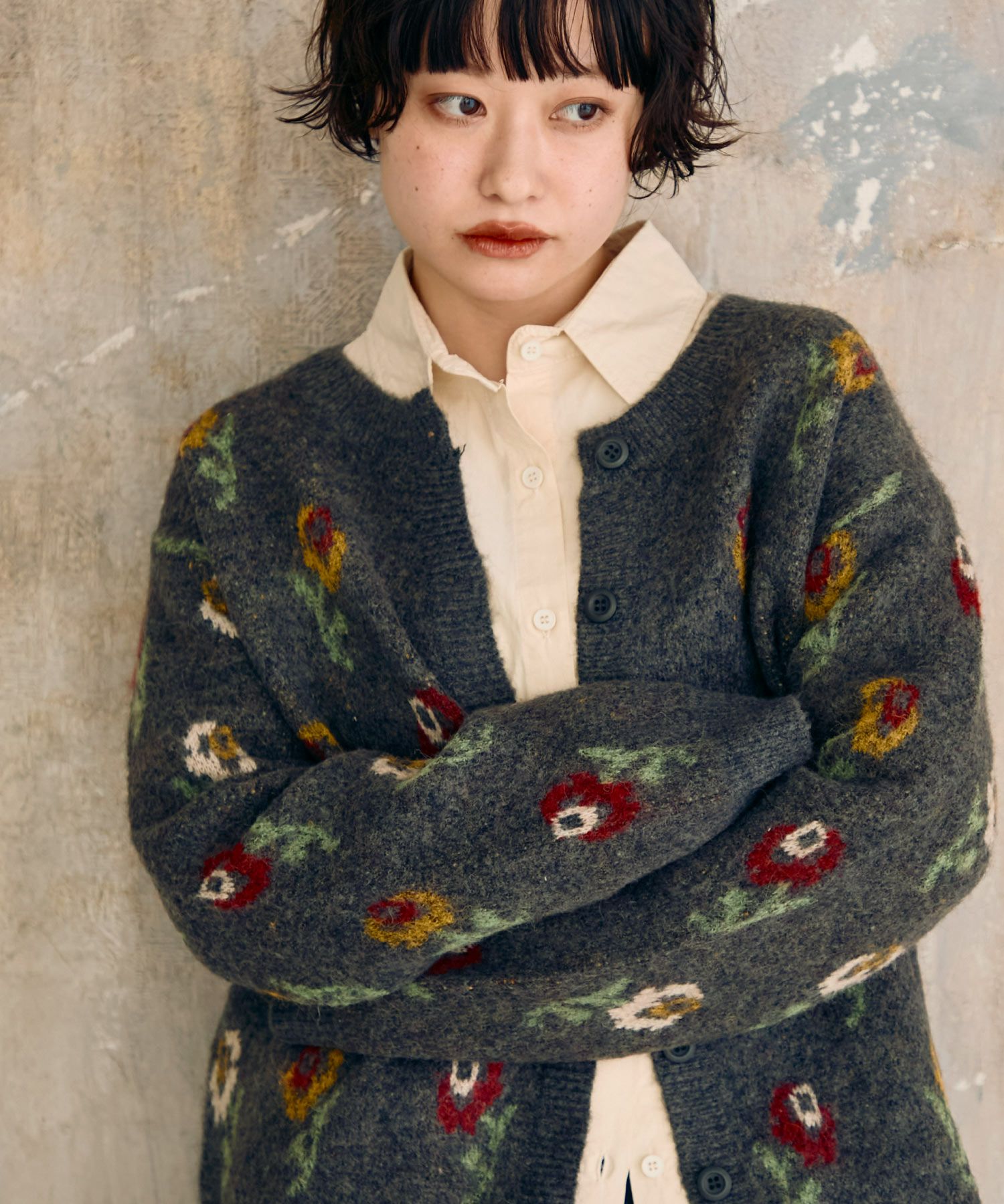 フラワー刺繍ニットカーディガン[c1k3748b]