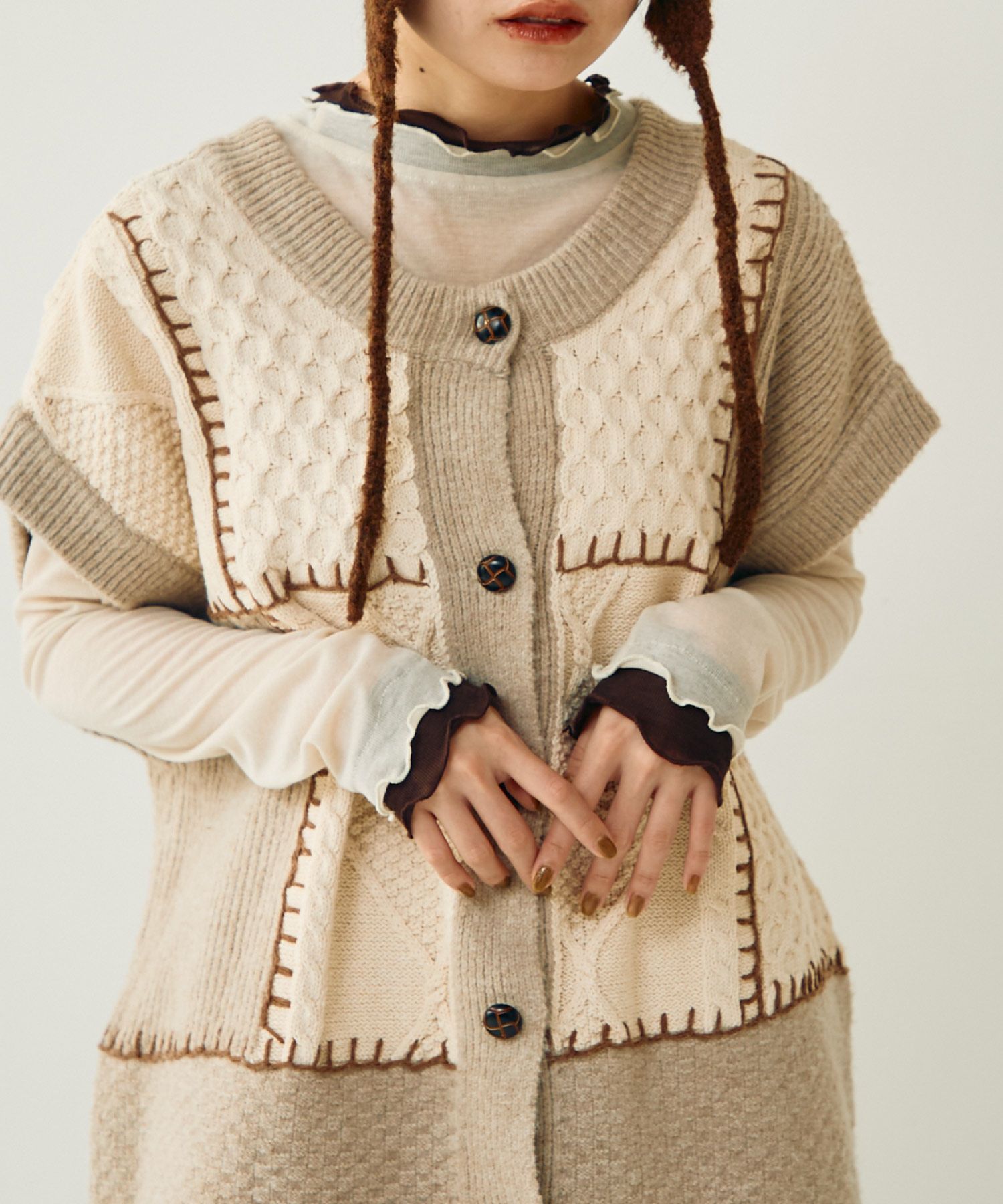 フラワーモチーフオーバーニットカーディガン[c1k3755b]