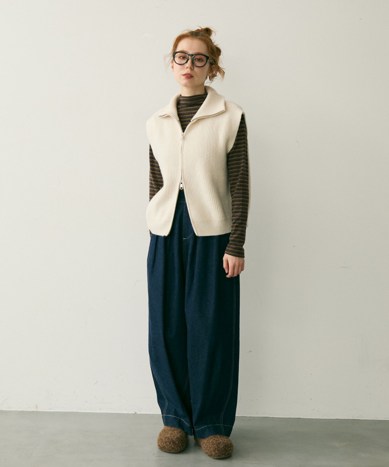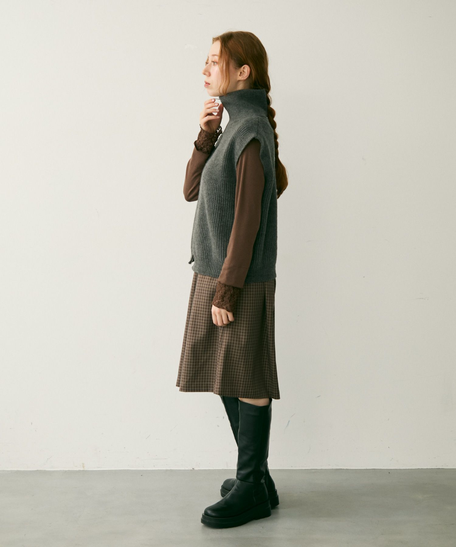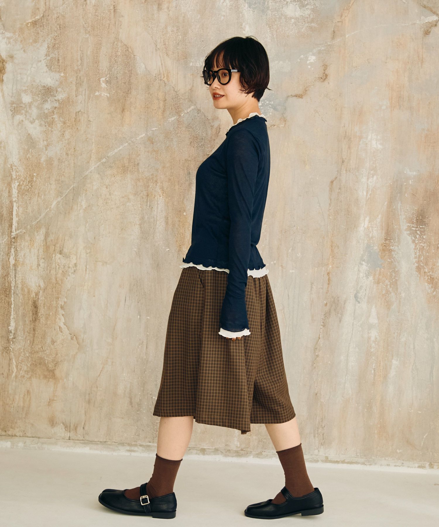 ダブルタックチェックカーブパンツ[c2k3880b]