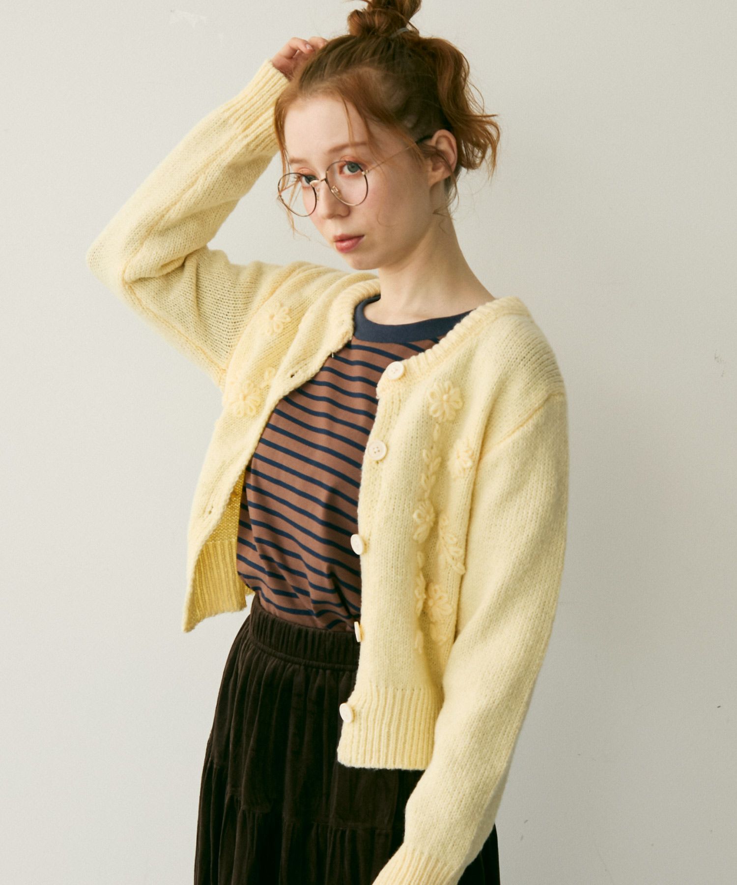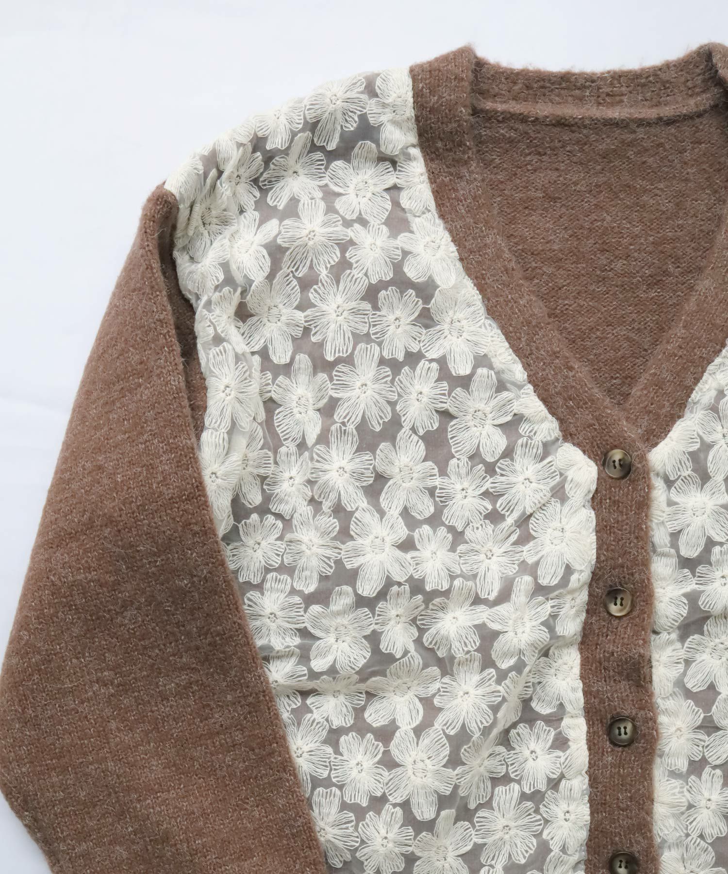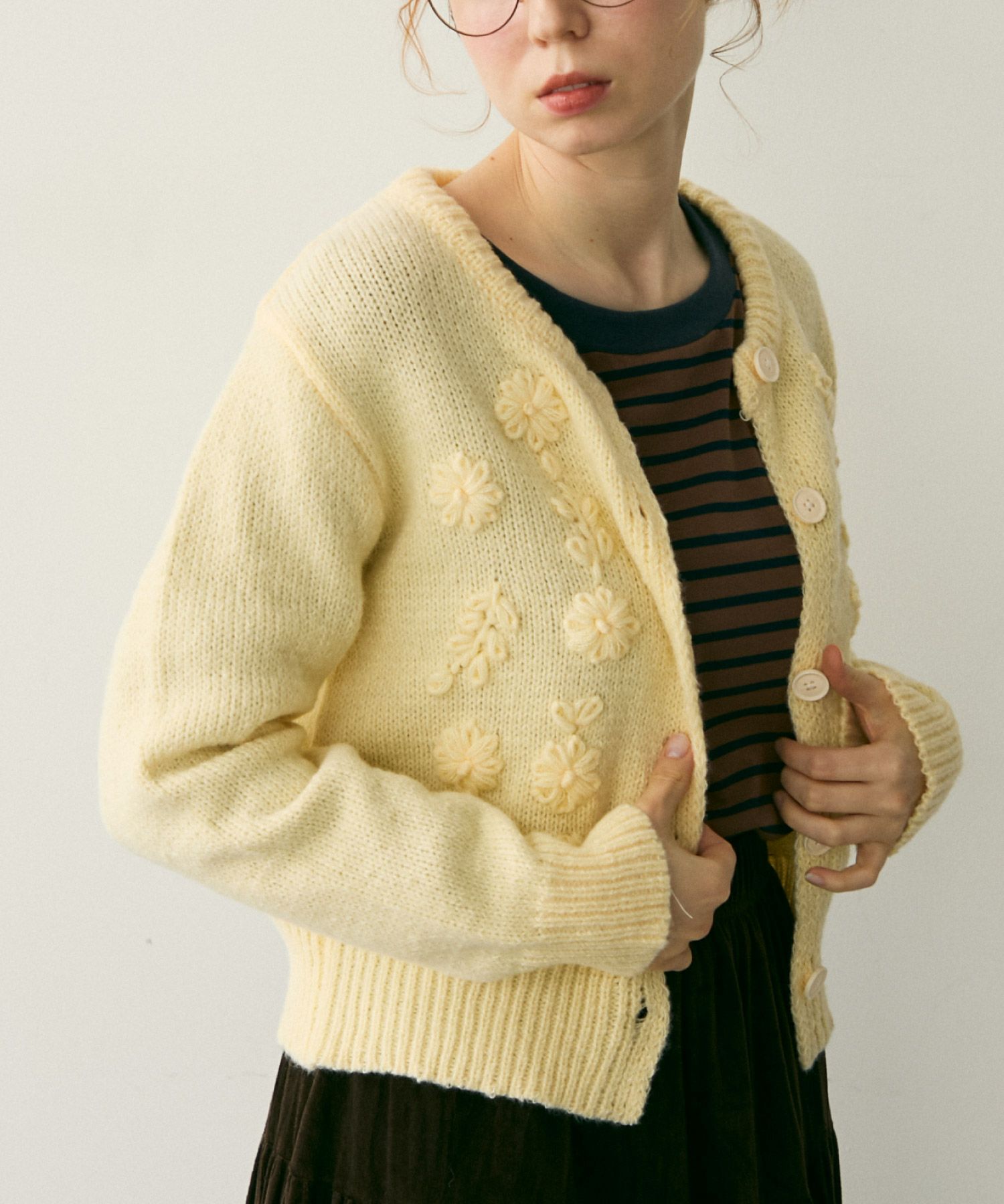 フラワー刺繍ニットカーディガン[c1k3748b]