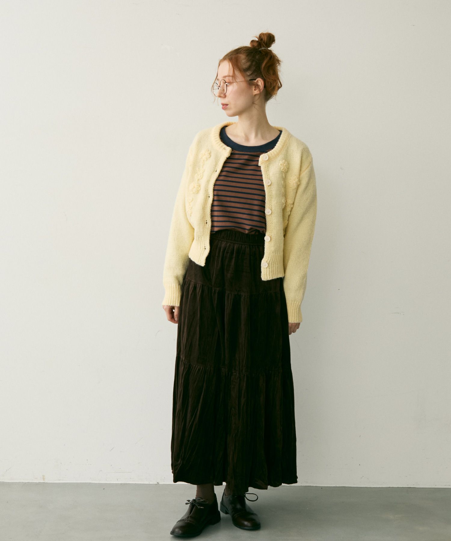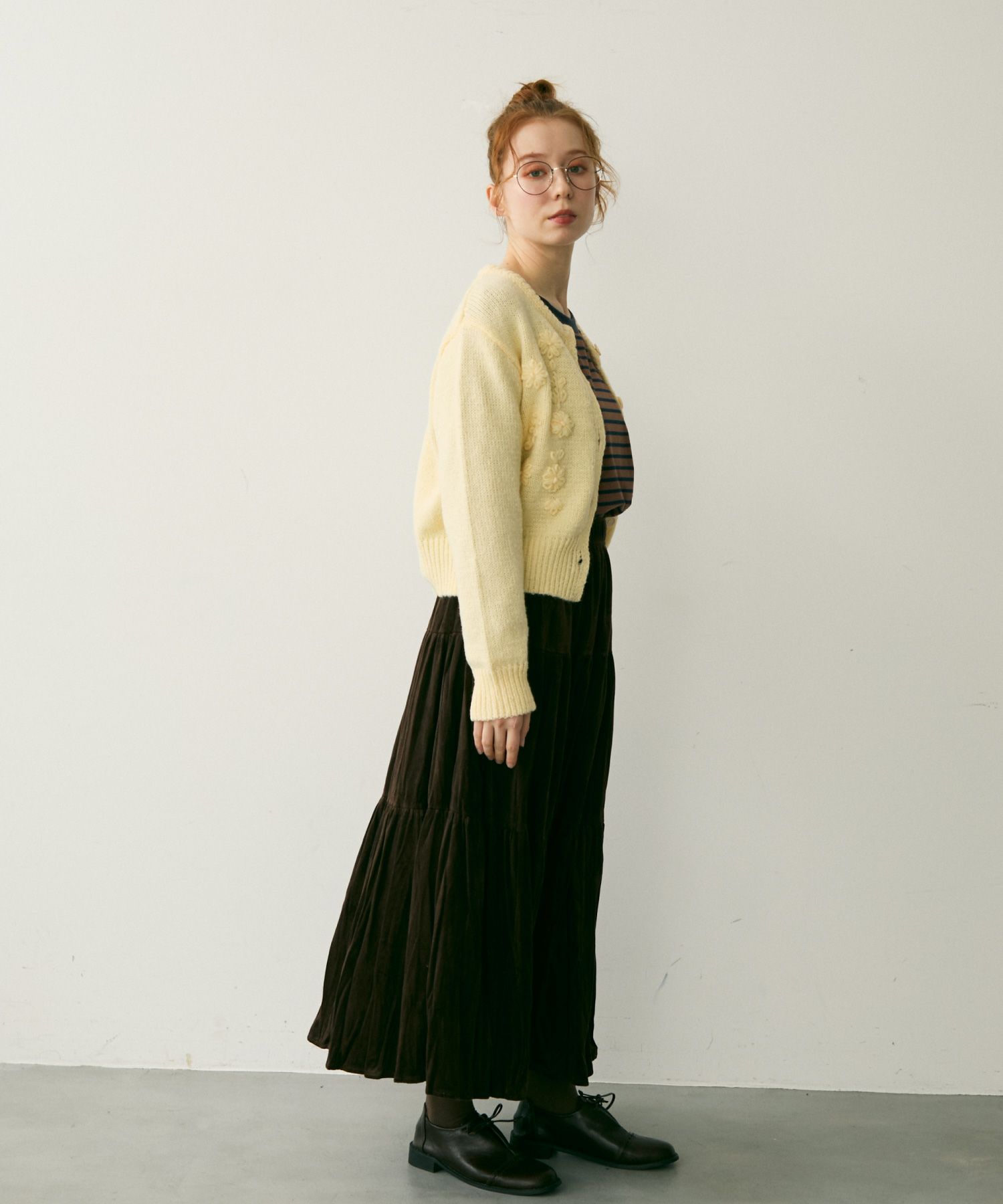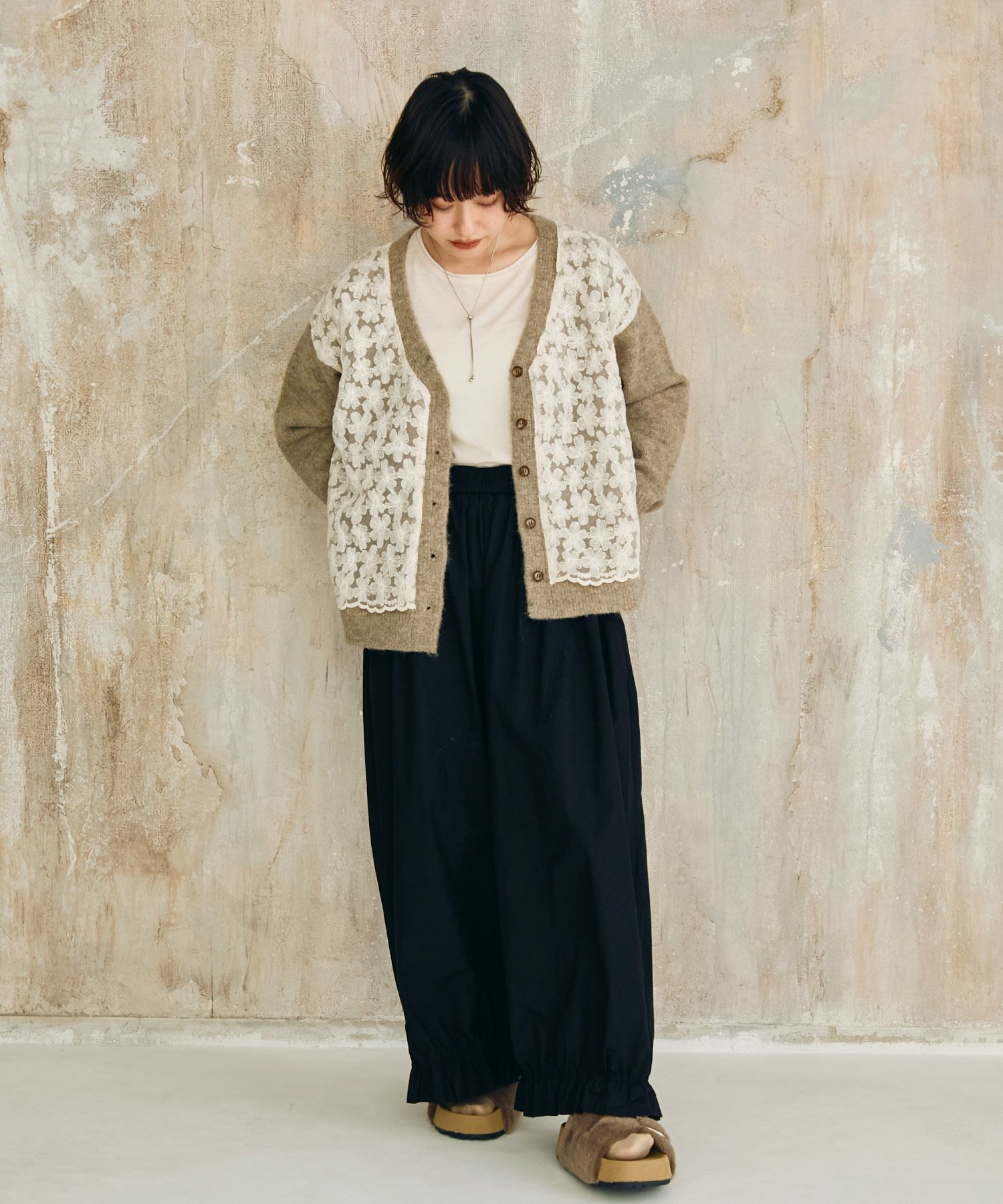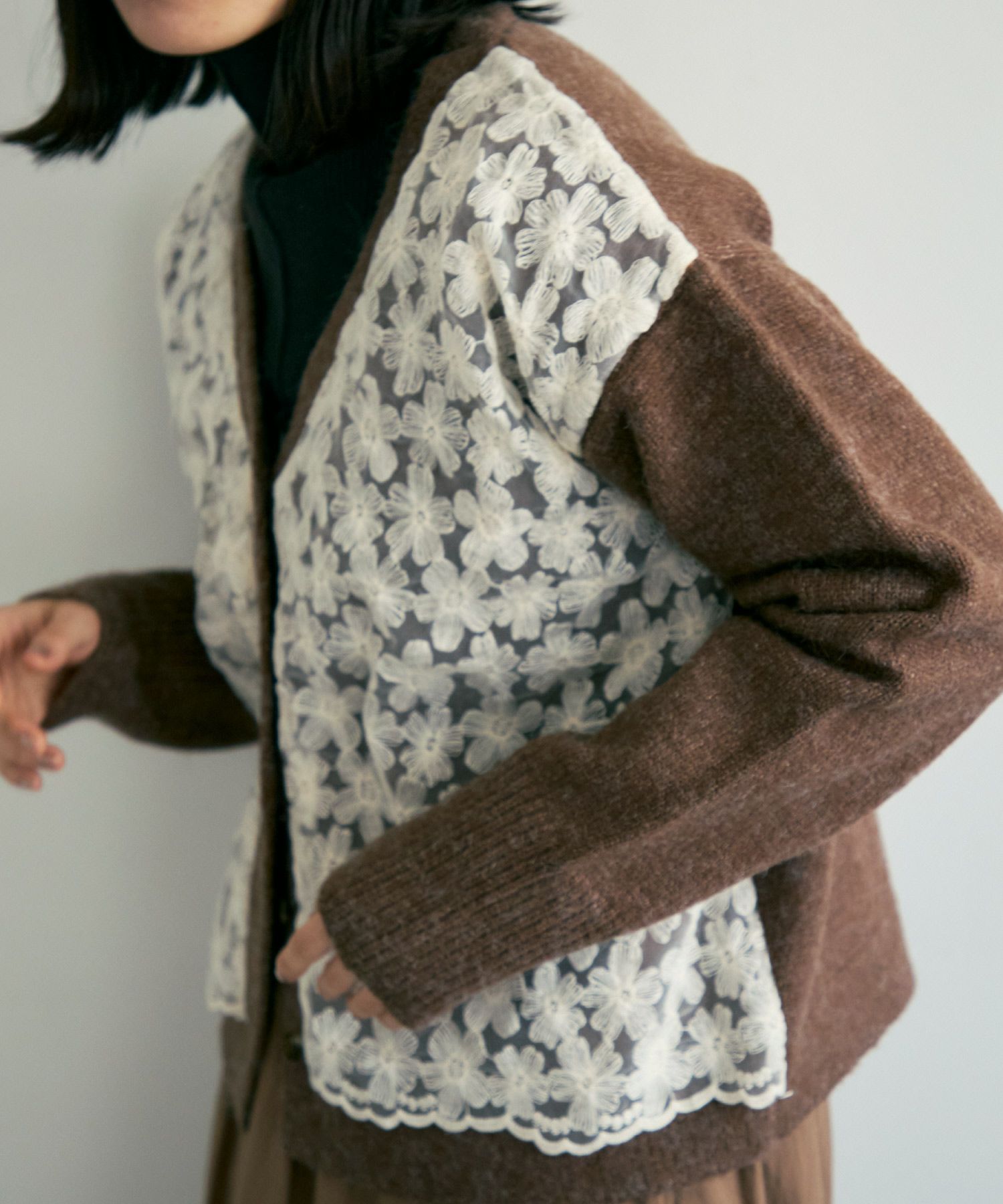 フラワー刺繍ニットカーディガン[c1k3748b]