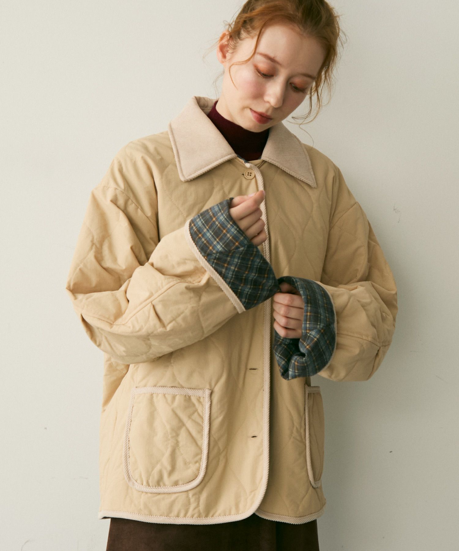 コーデュロイカラーキルティングジャケット[c8R3703]