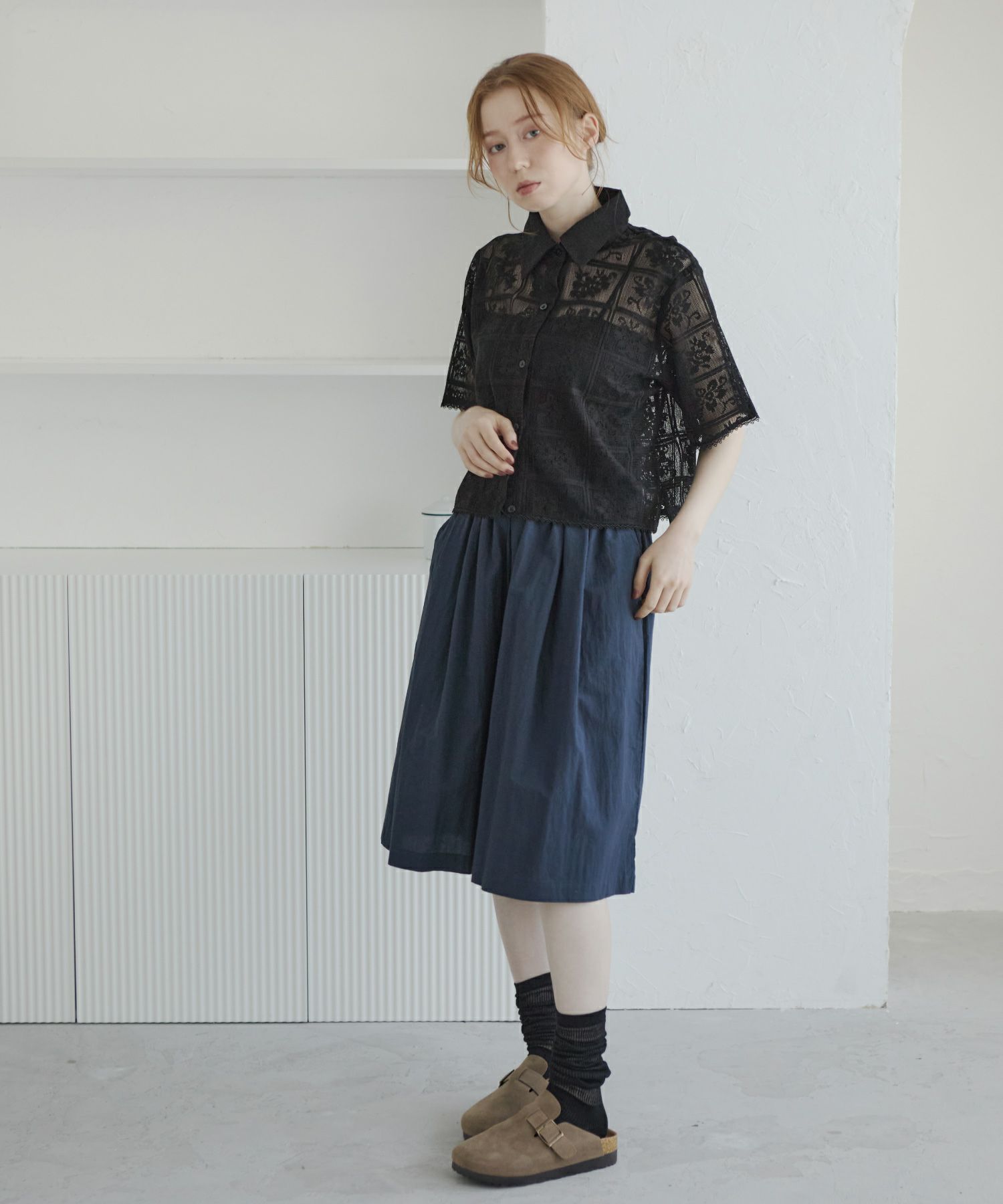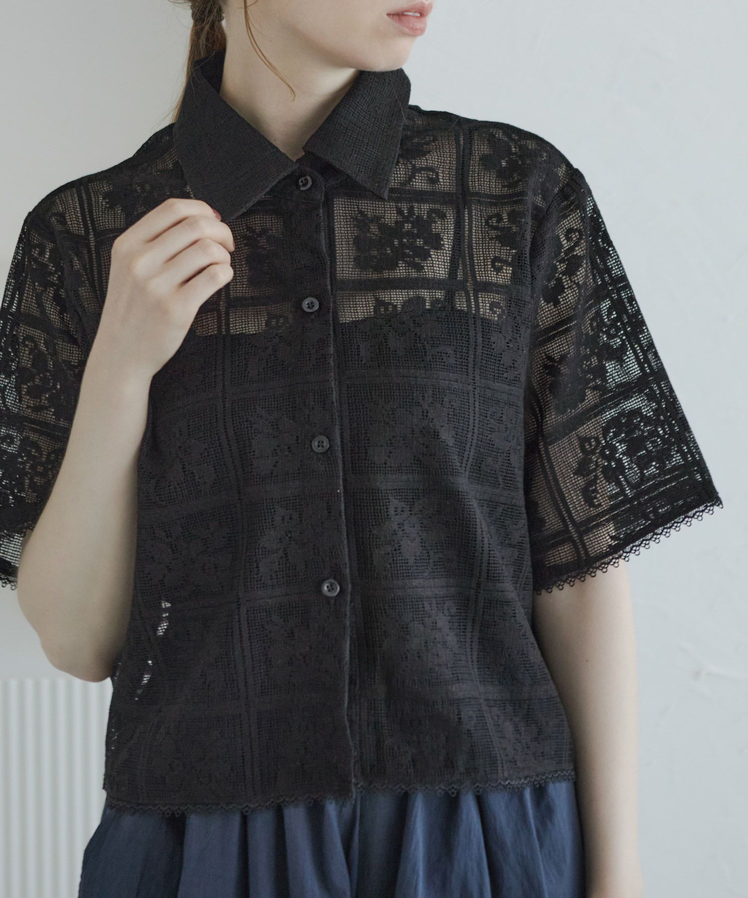 【再入荷】フラワーレースルーズトップス[c1k3784b]