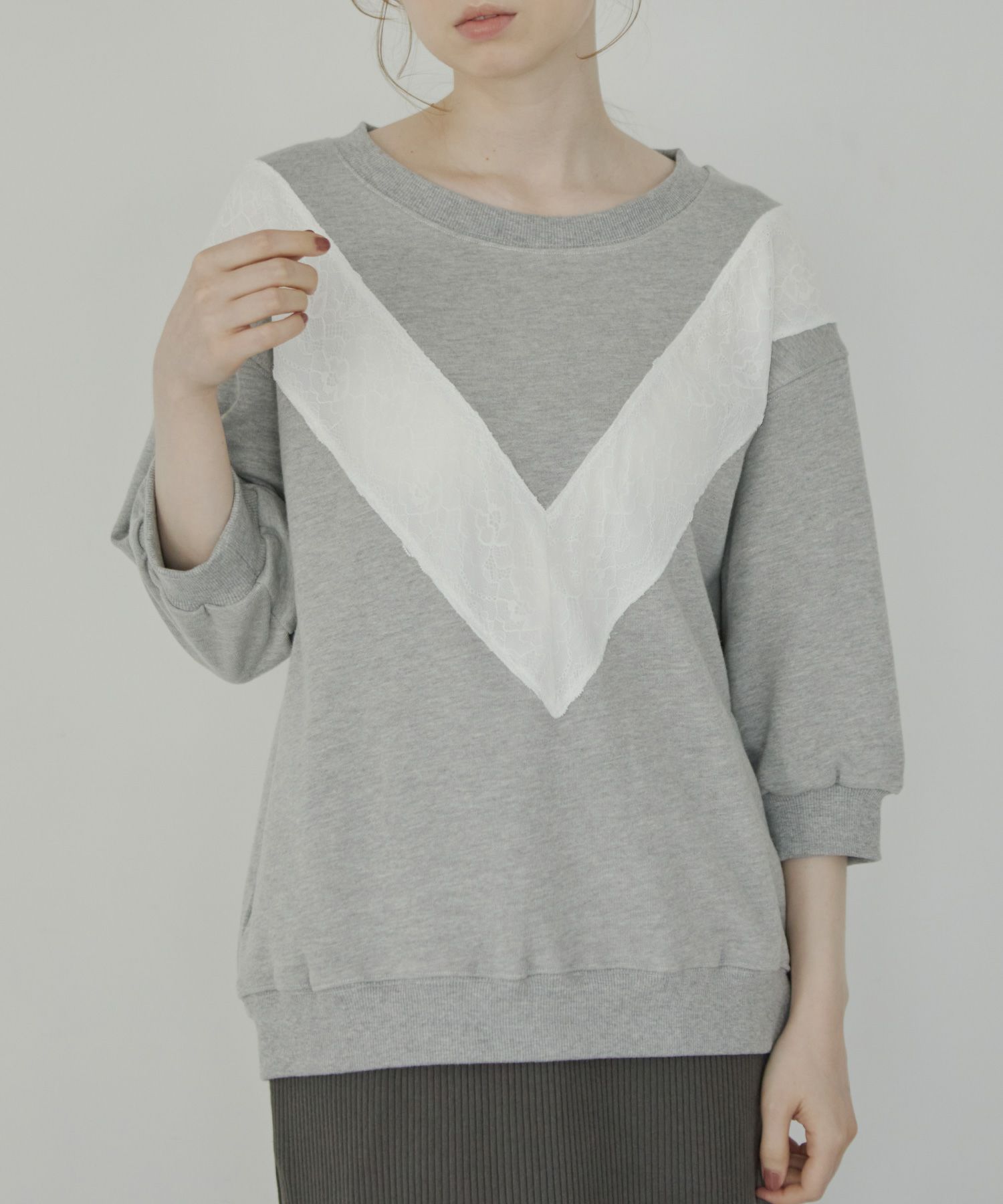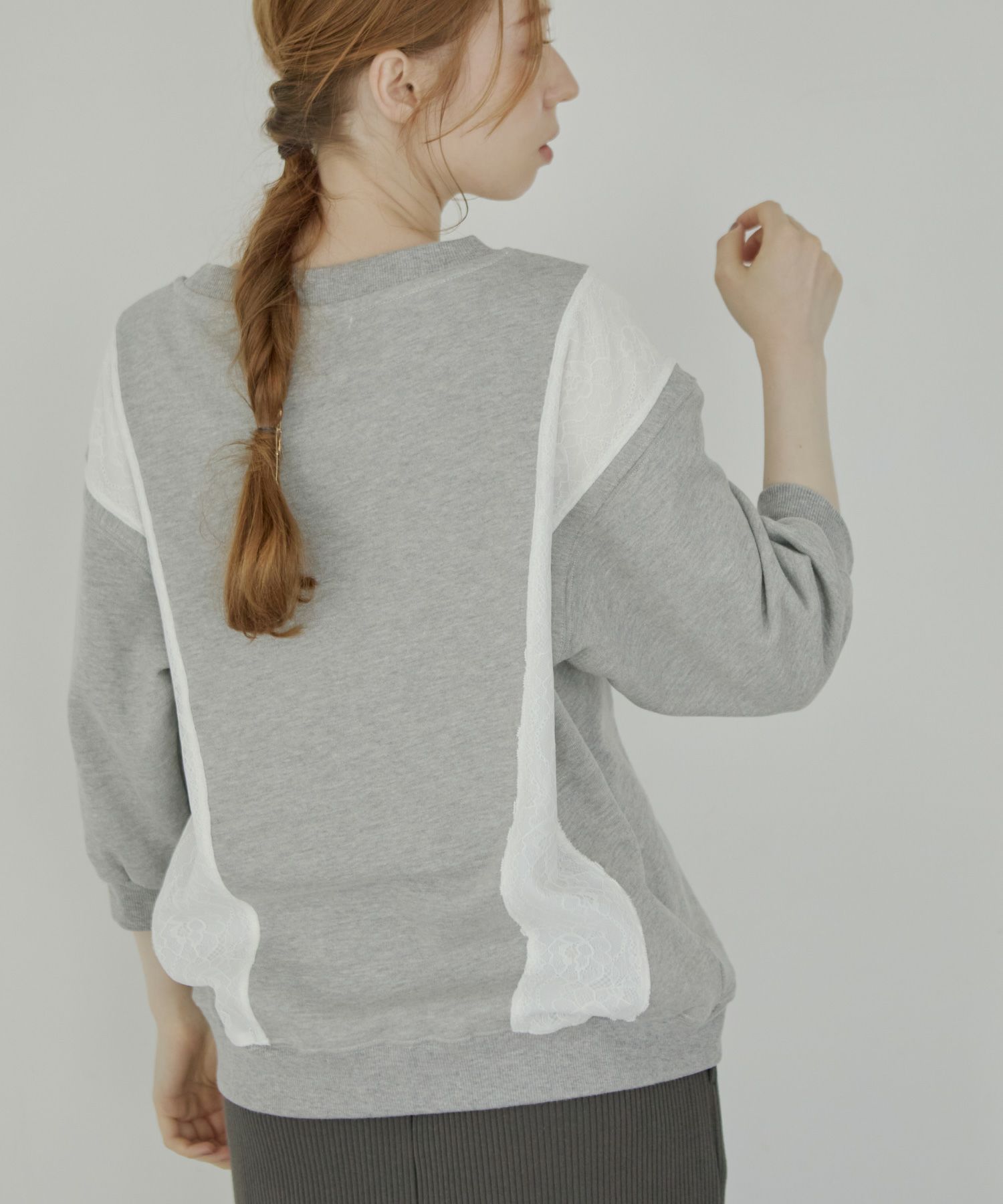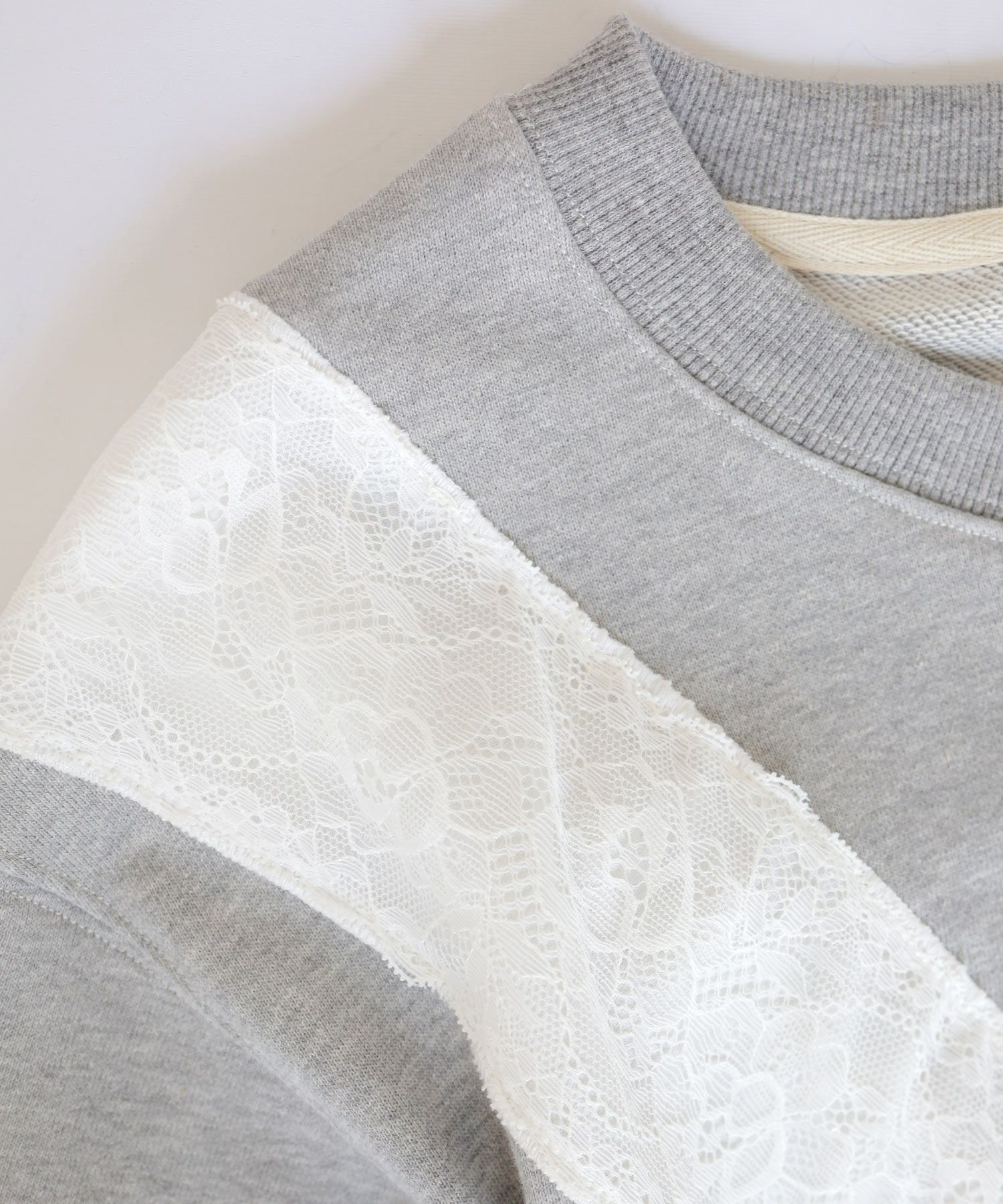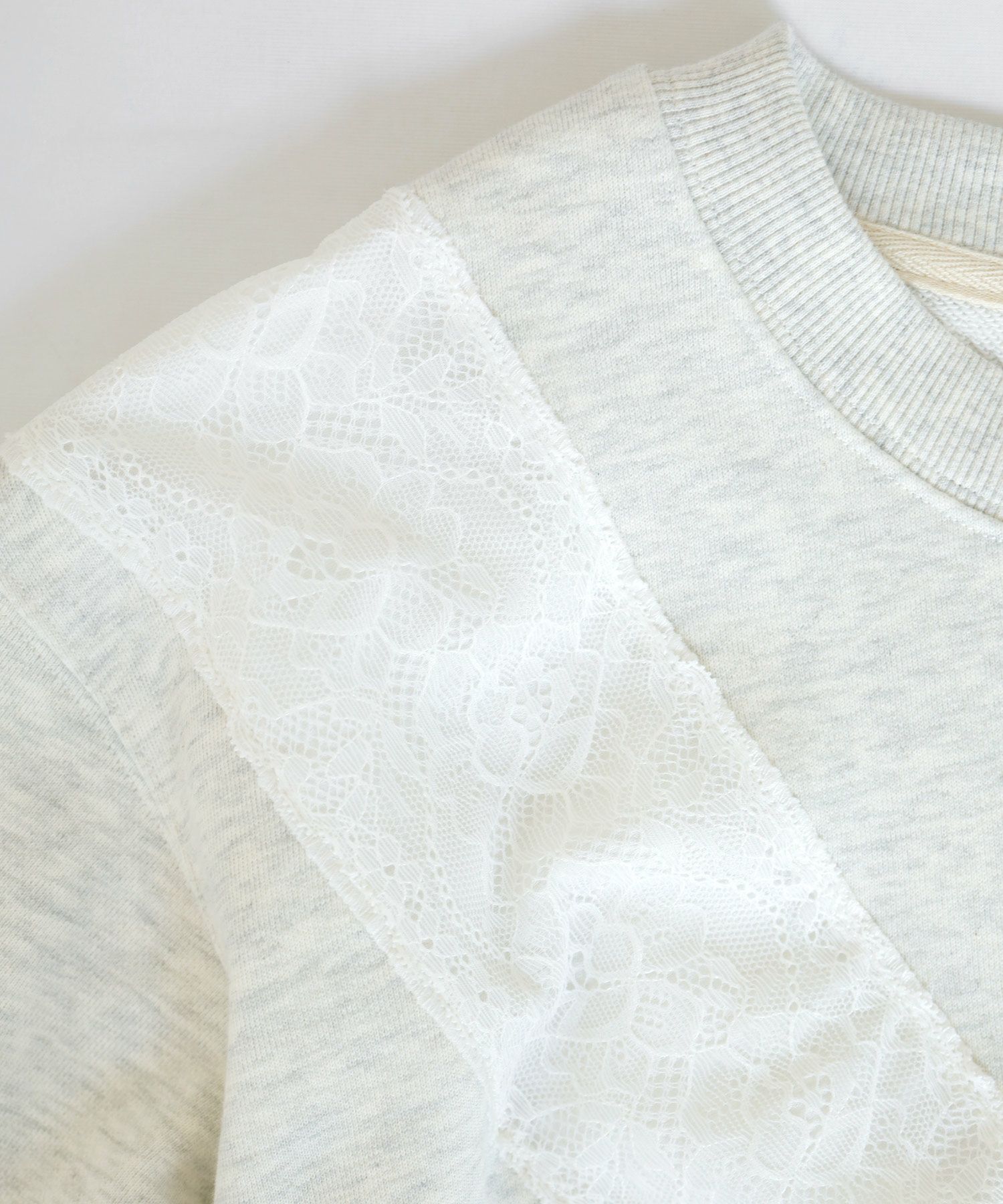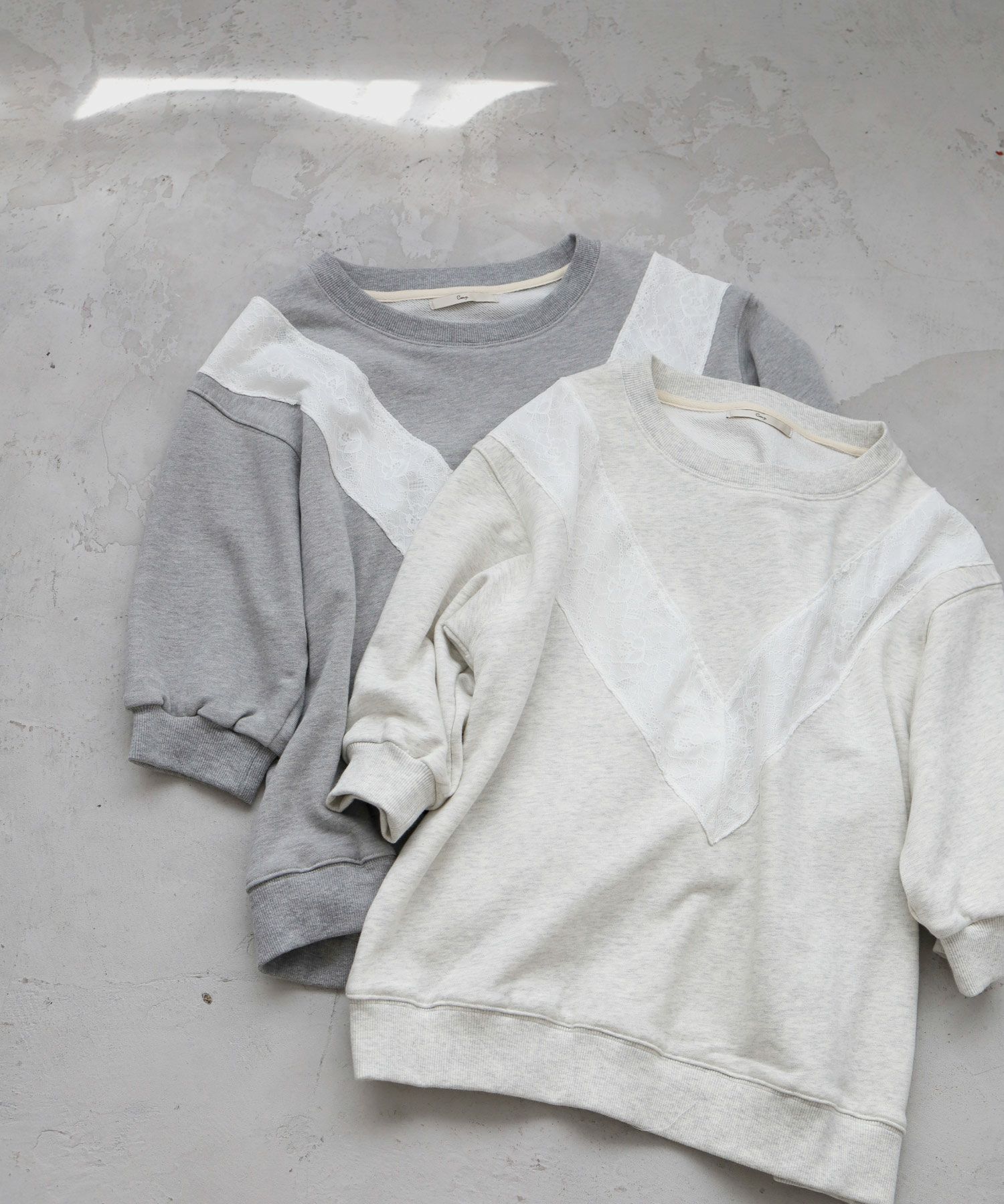 レースアクセントハーフスリーブスウェット[c1k3785]