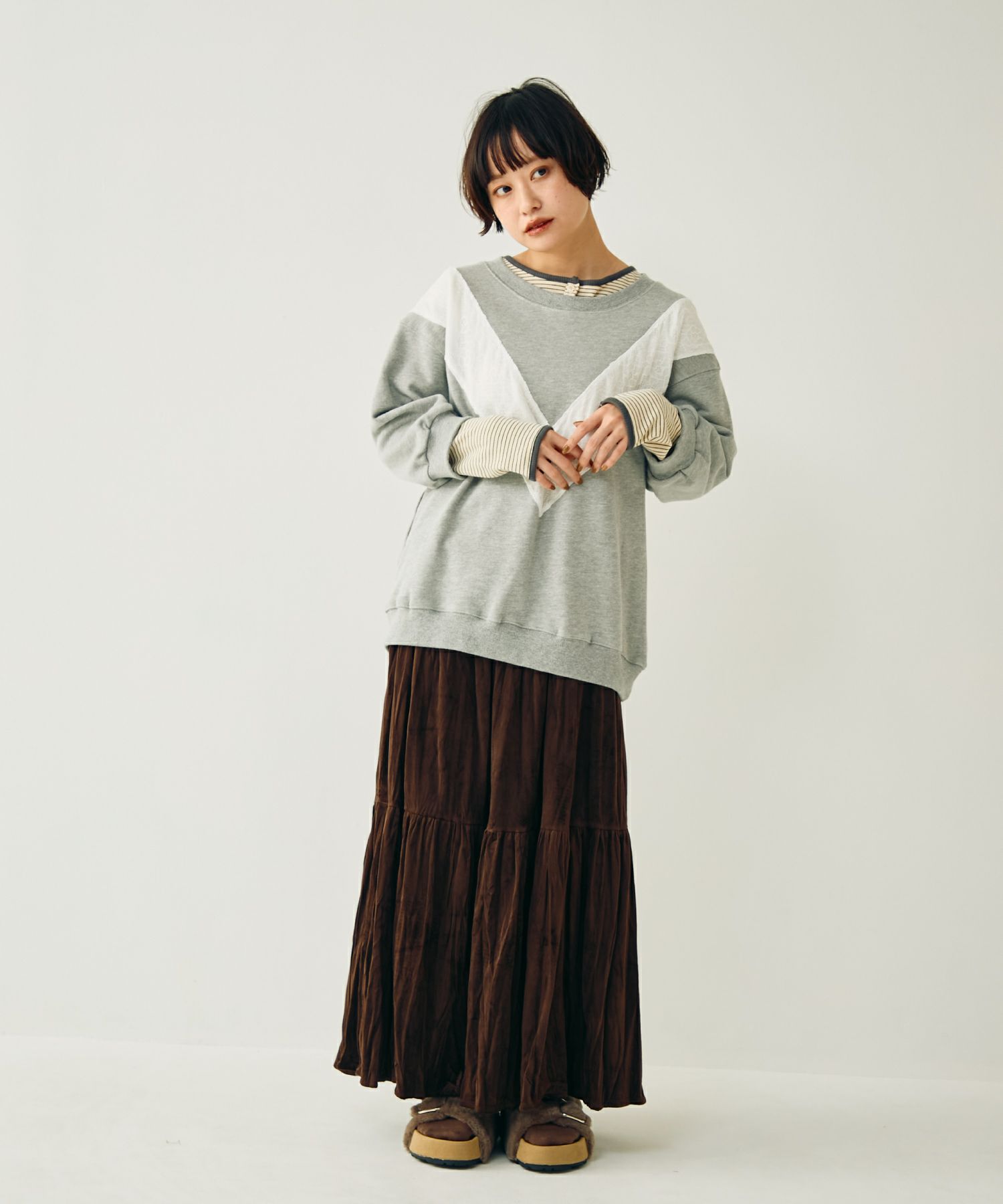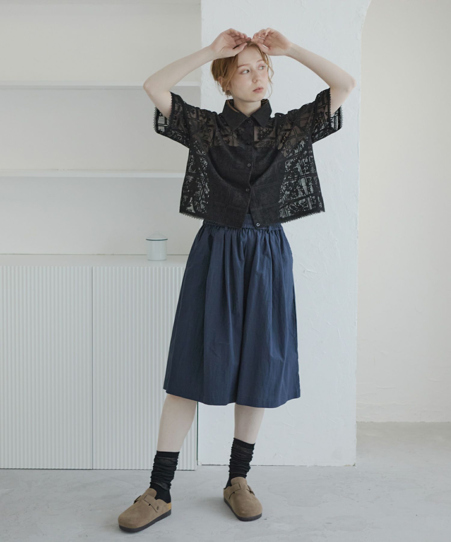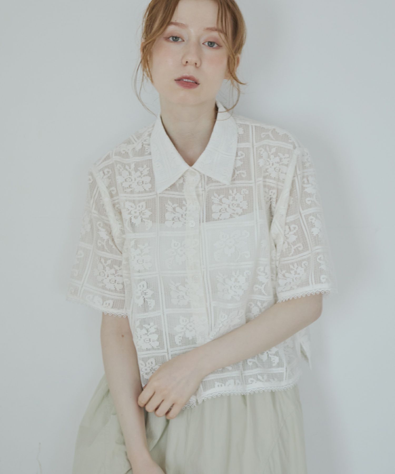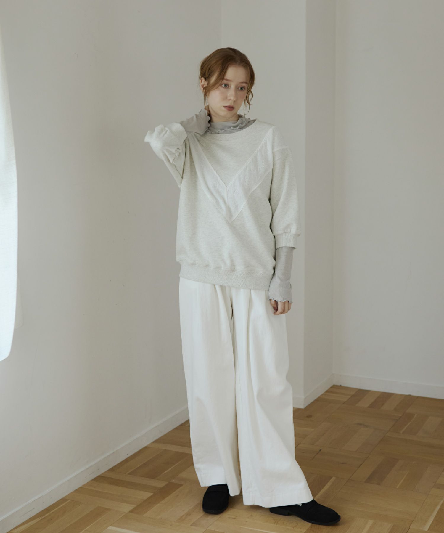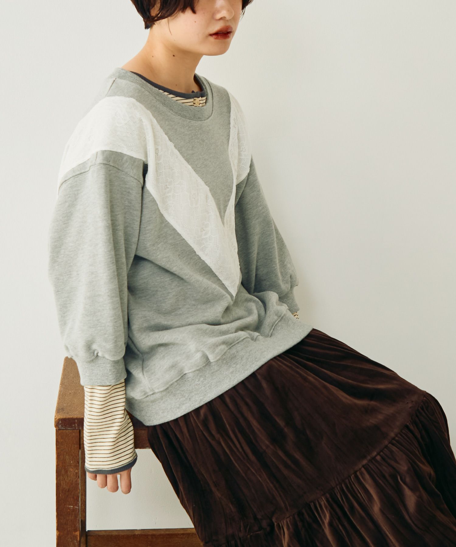 レースアクセントハーフスリーブスウェット[c1k3785]