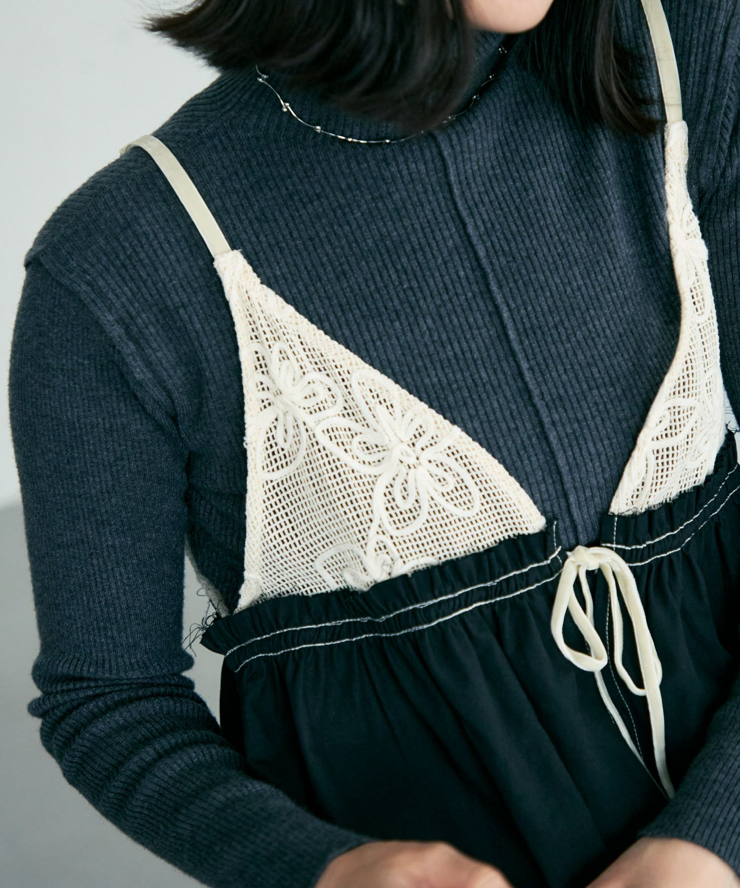 フラワーメッシュトップキャミワンピース[c2R3786]
