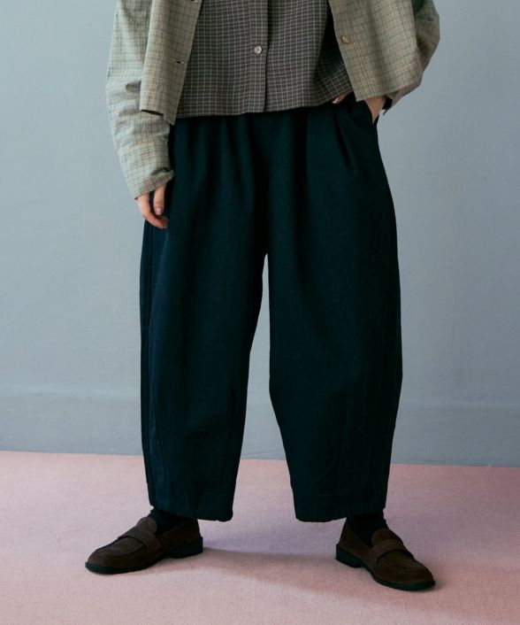【裾にかけてカーブを描いたシルエットがこなれ感とリラックス感のあるボリュームパンツ】