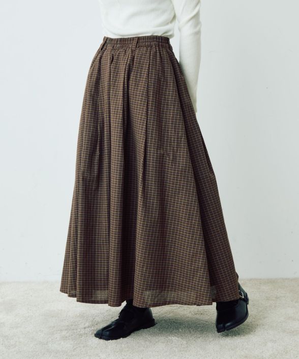 【秋冬ムードを演出するチェック柄が着映えするコーディネートの主役になるボリュームスカート】