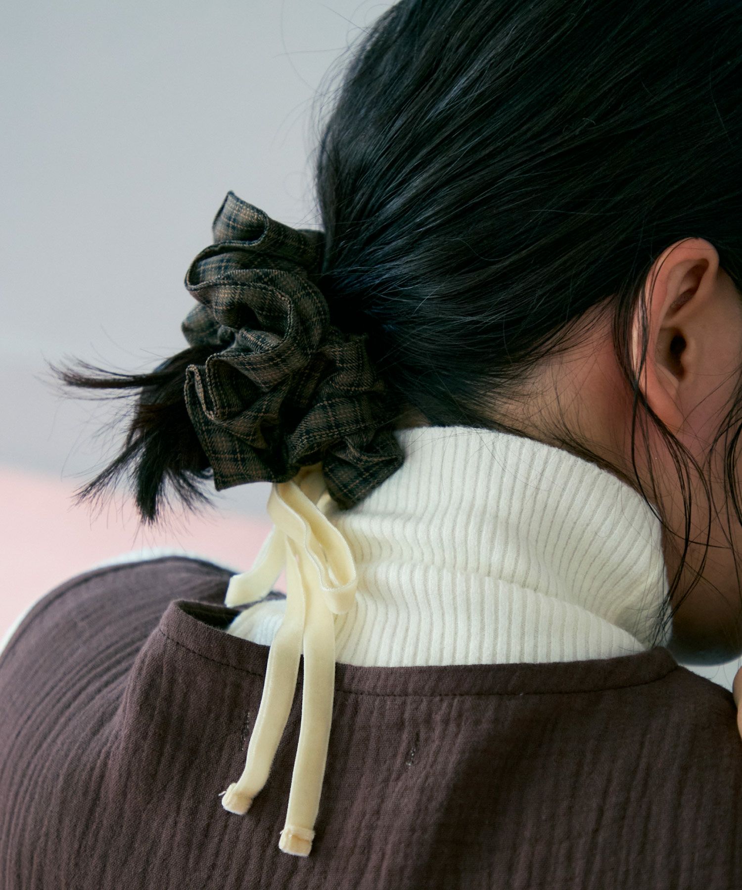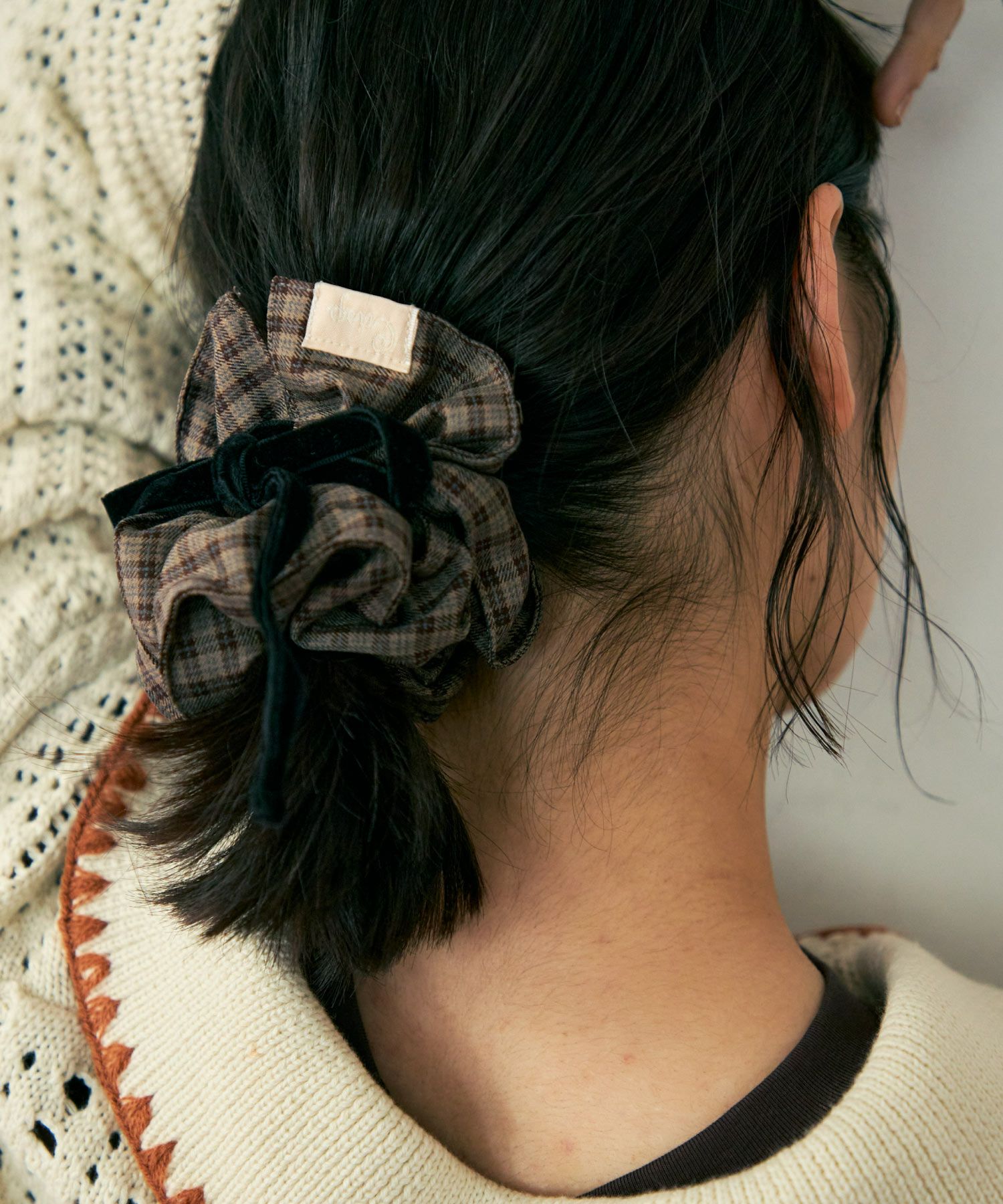 ベロアリボンチェックシュシュ[c3R3704]
