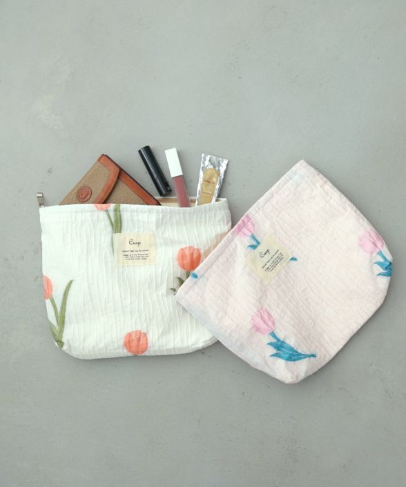・ジャガードのチューリップ柄でポップすぎない生地感 ・フロントにはブランドタグを施しポイントに ・大きめでカバンの中をすっきり整理できるサイズ感 ・厚手の裏地付きでしっかりとした仕立て ・しっかりとマチが付いているので厚みのある物が収納できるのも魅力的