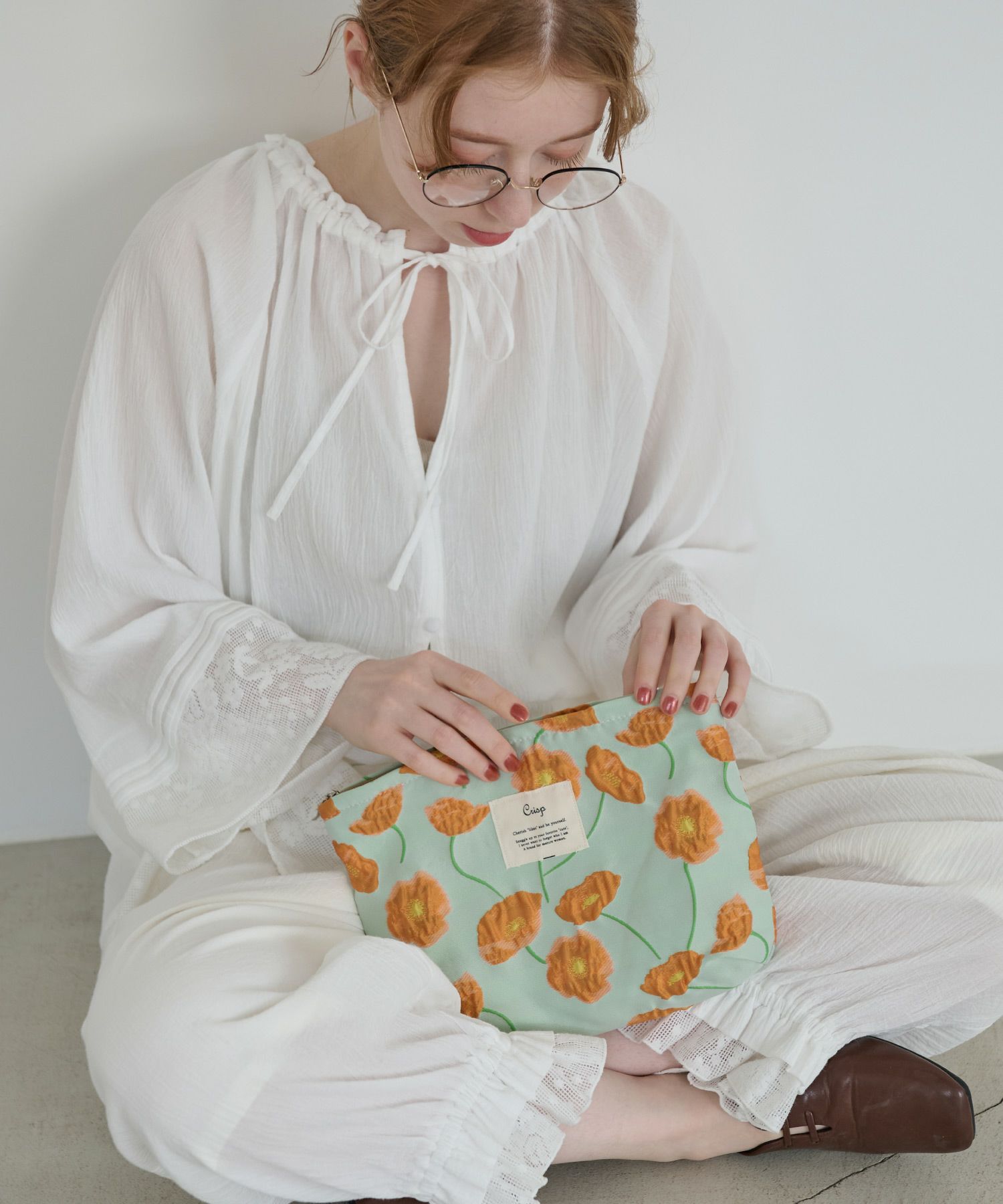 【再入荷】ジャカードフラワービッグポーチ[c3R3635b]
