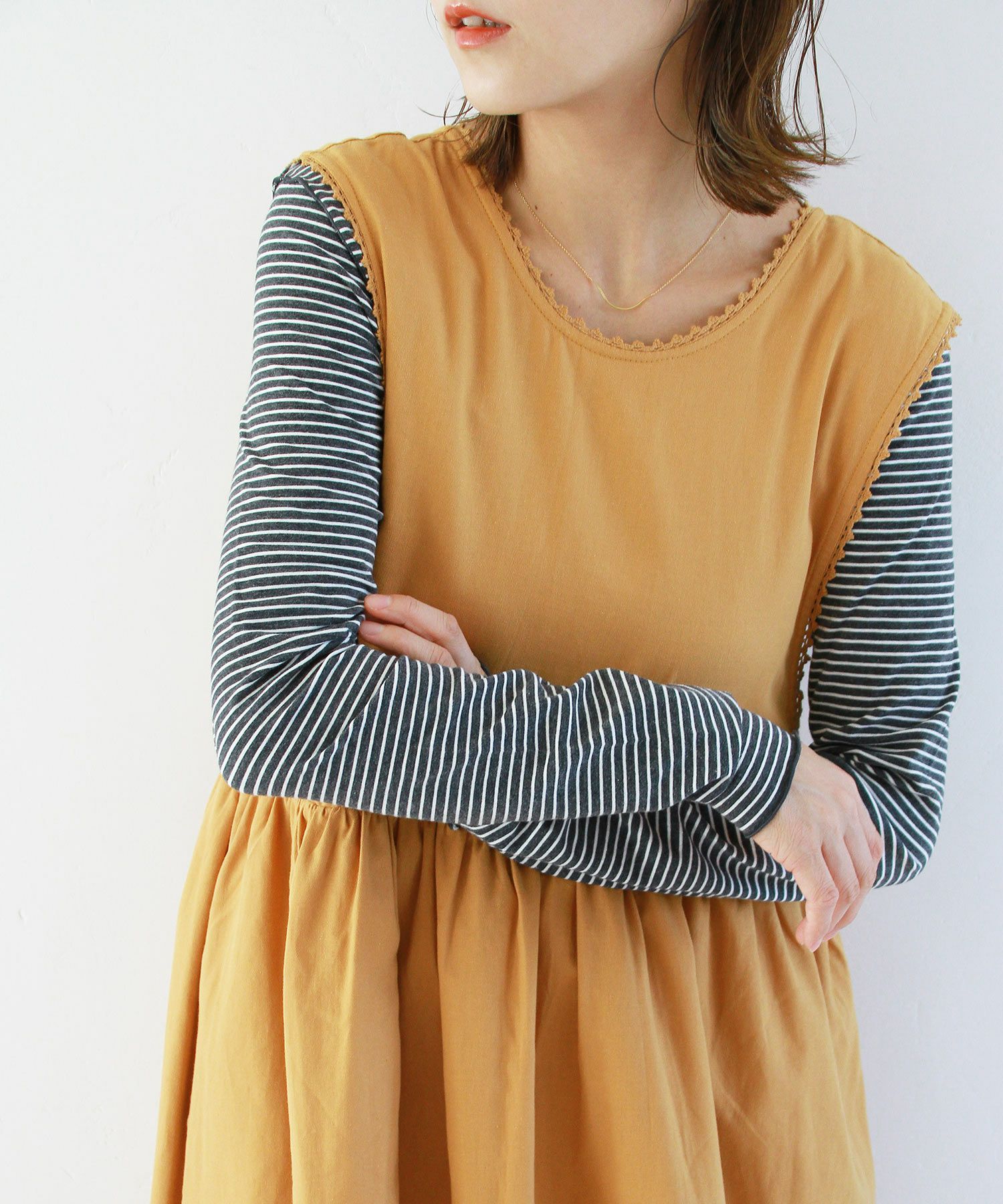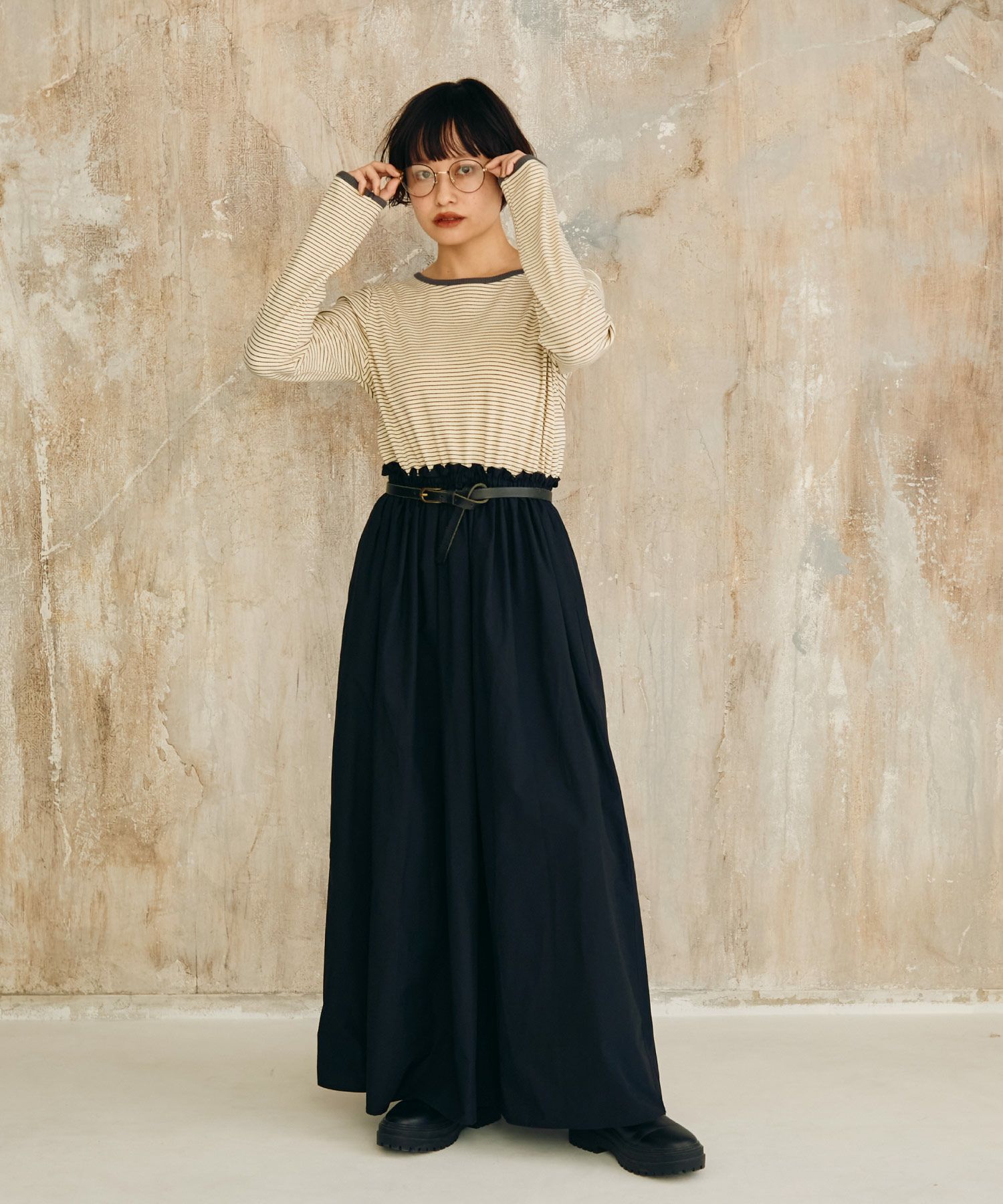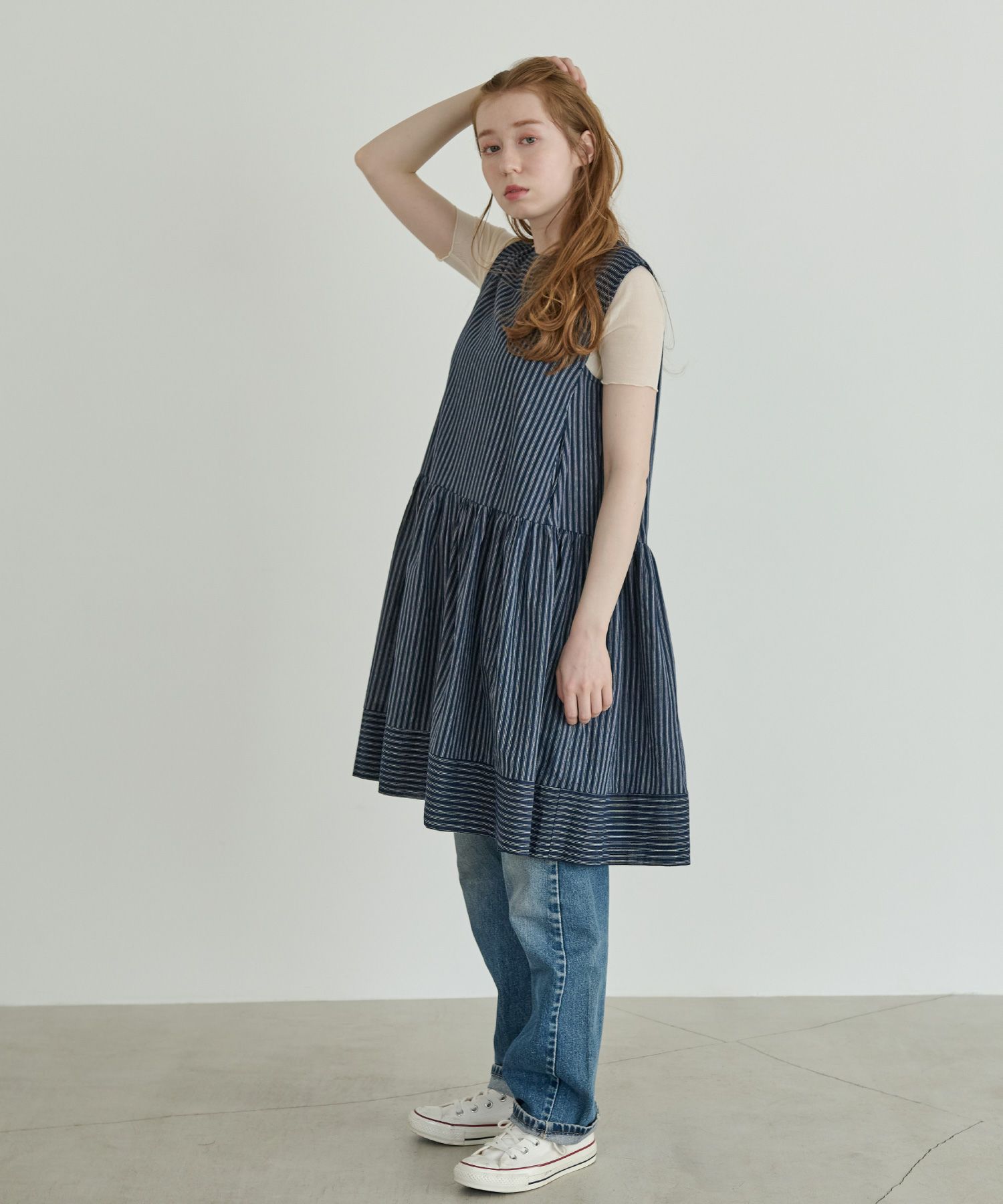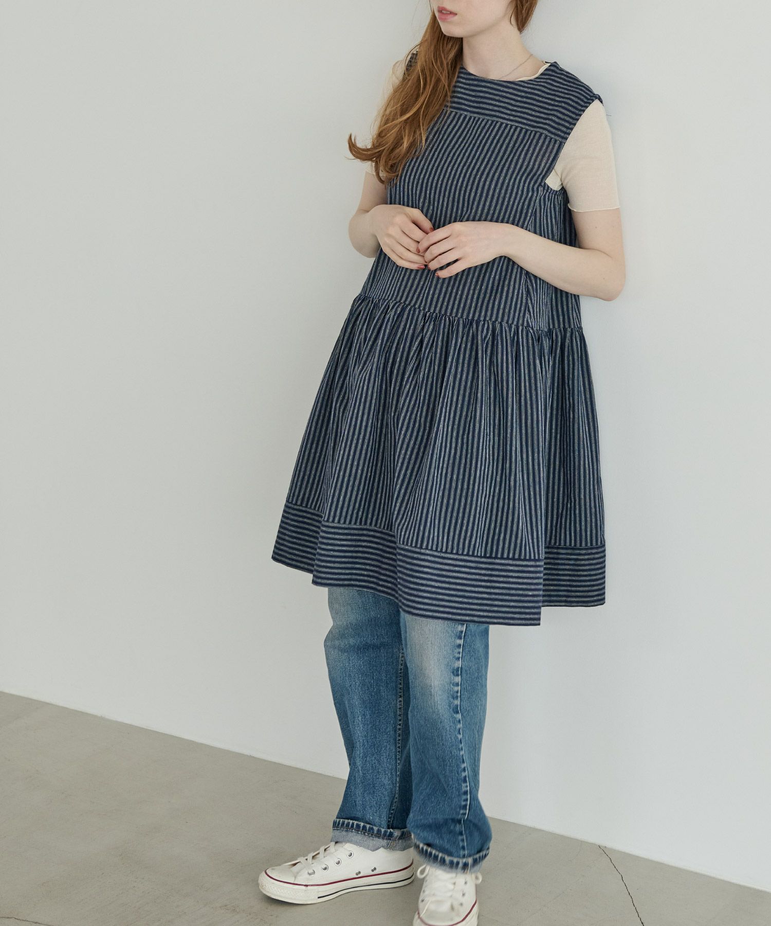 ストライプギャザーチュニックワンピース[c2R3644b]