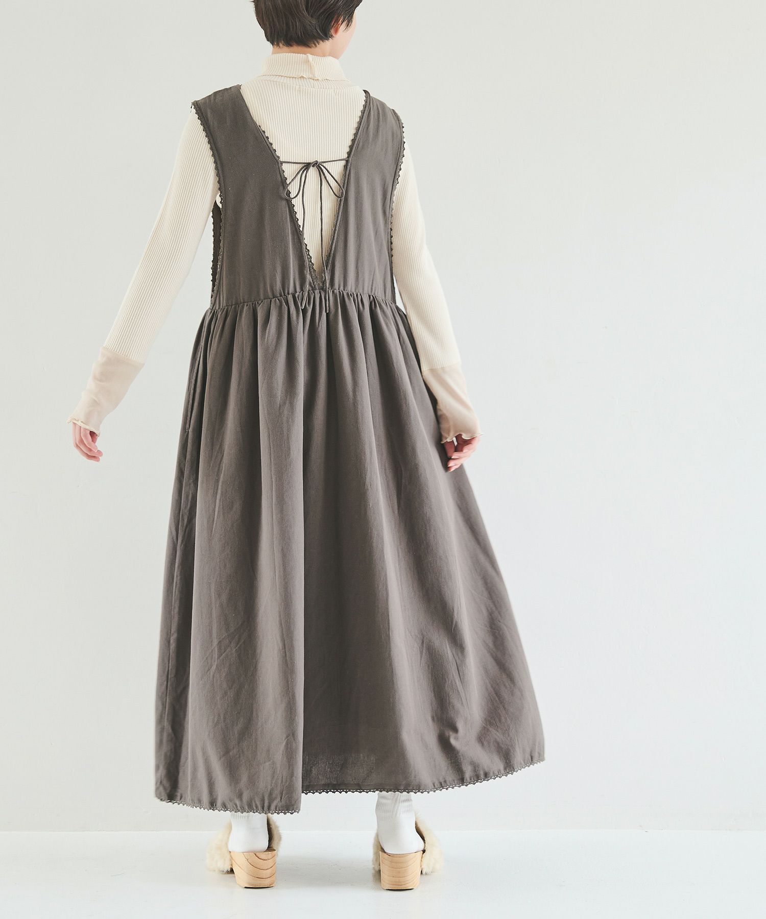 バックリボンコーデュロイロングシャツワンピース[c1R3700]