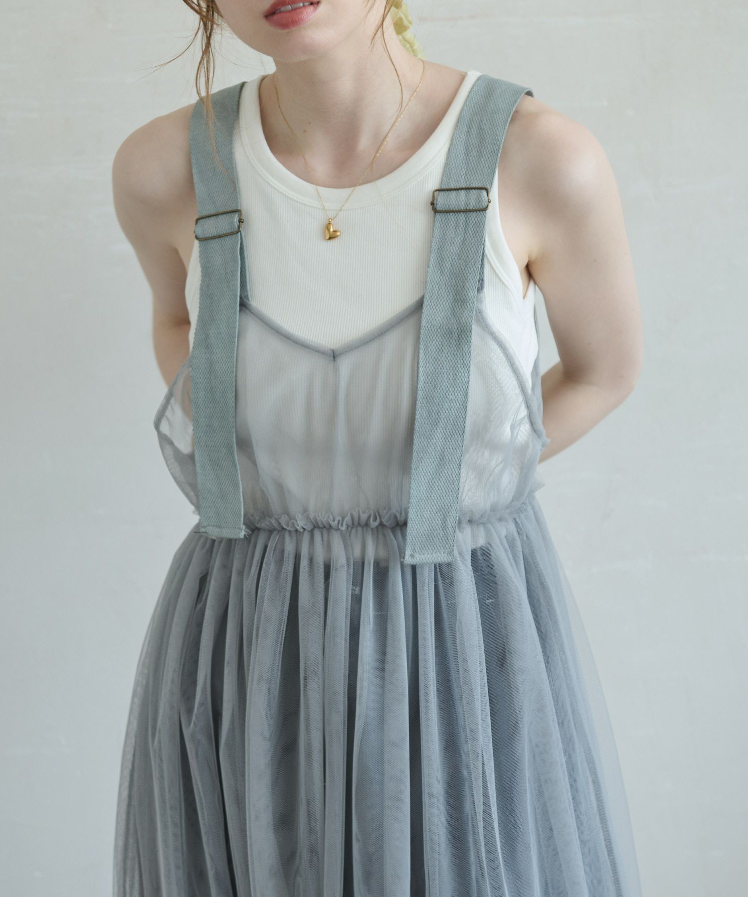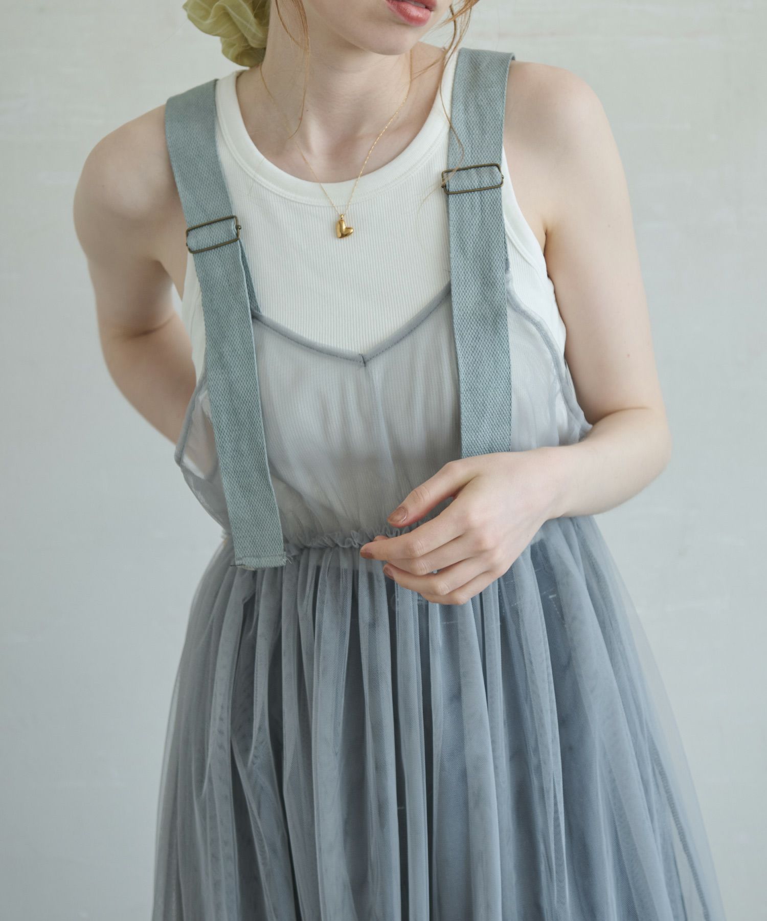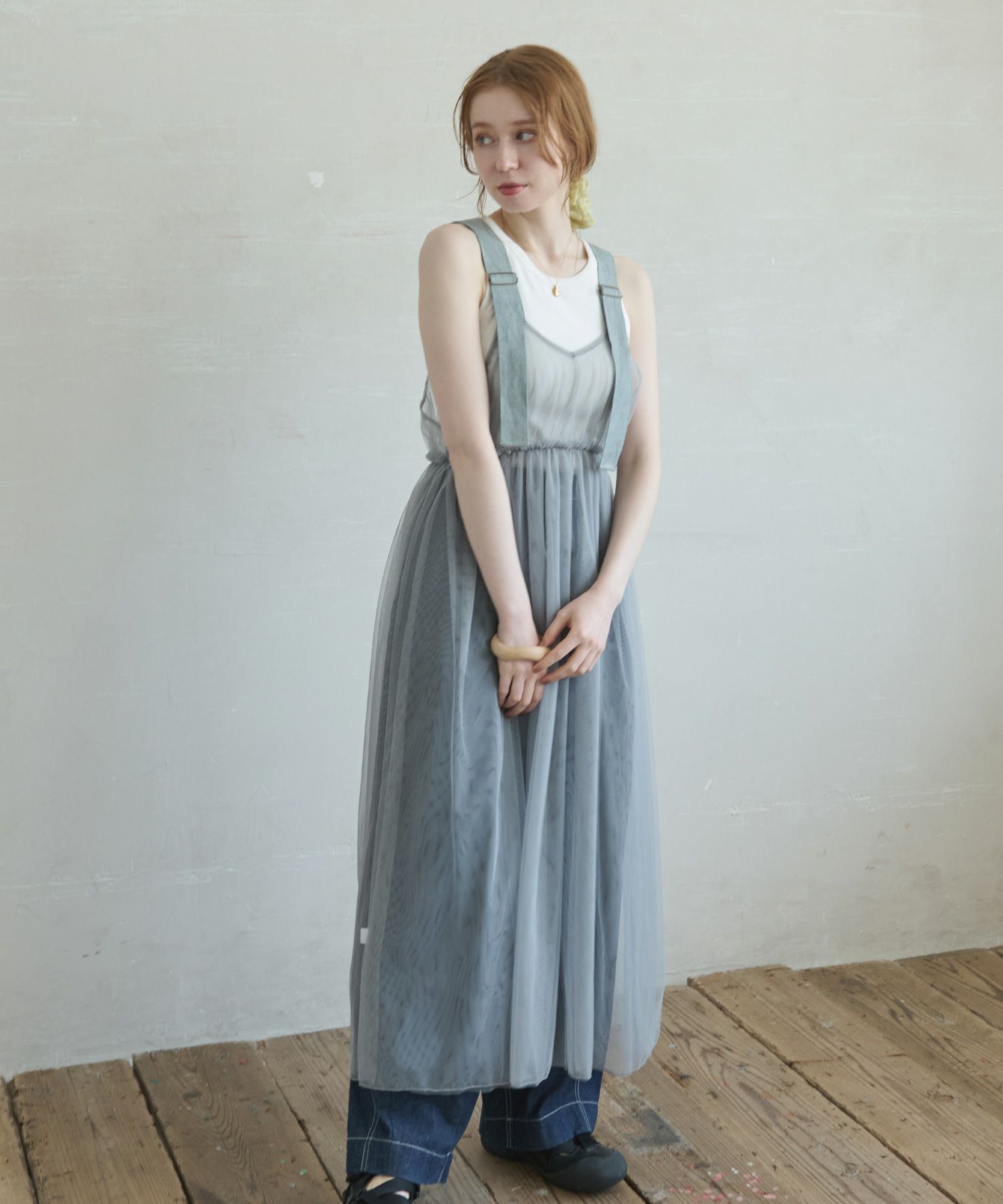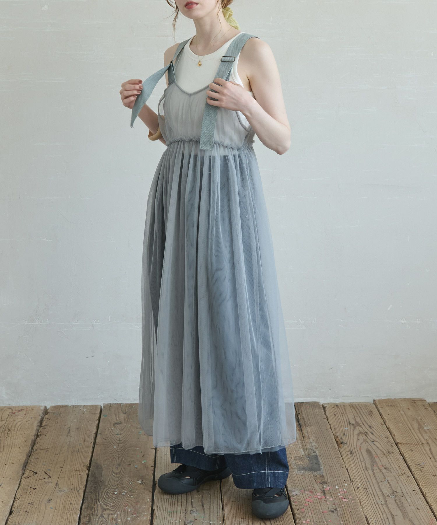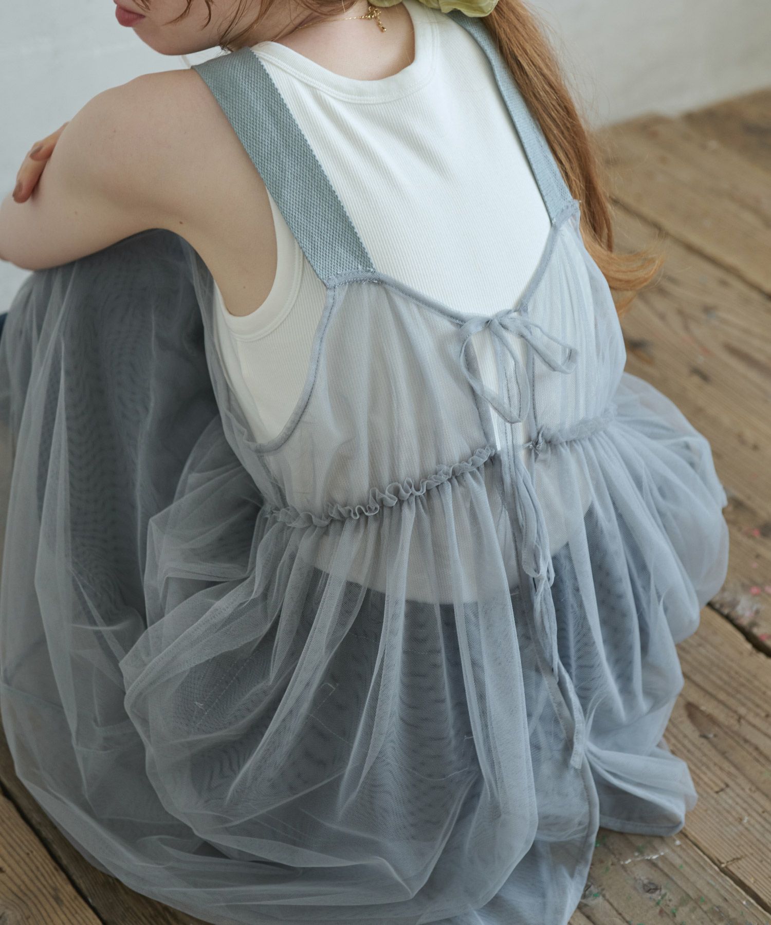 フラワーメッシュトップキャミワンピース[c2R3786]