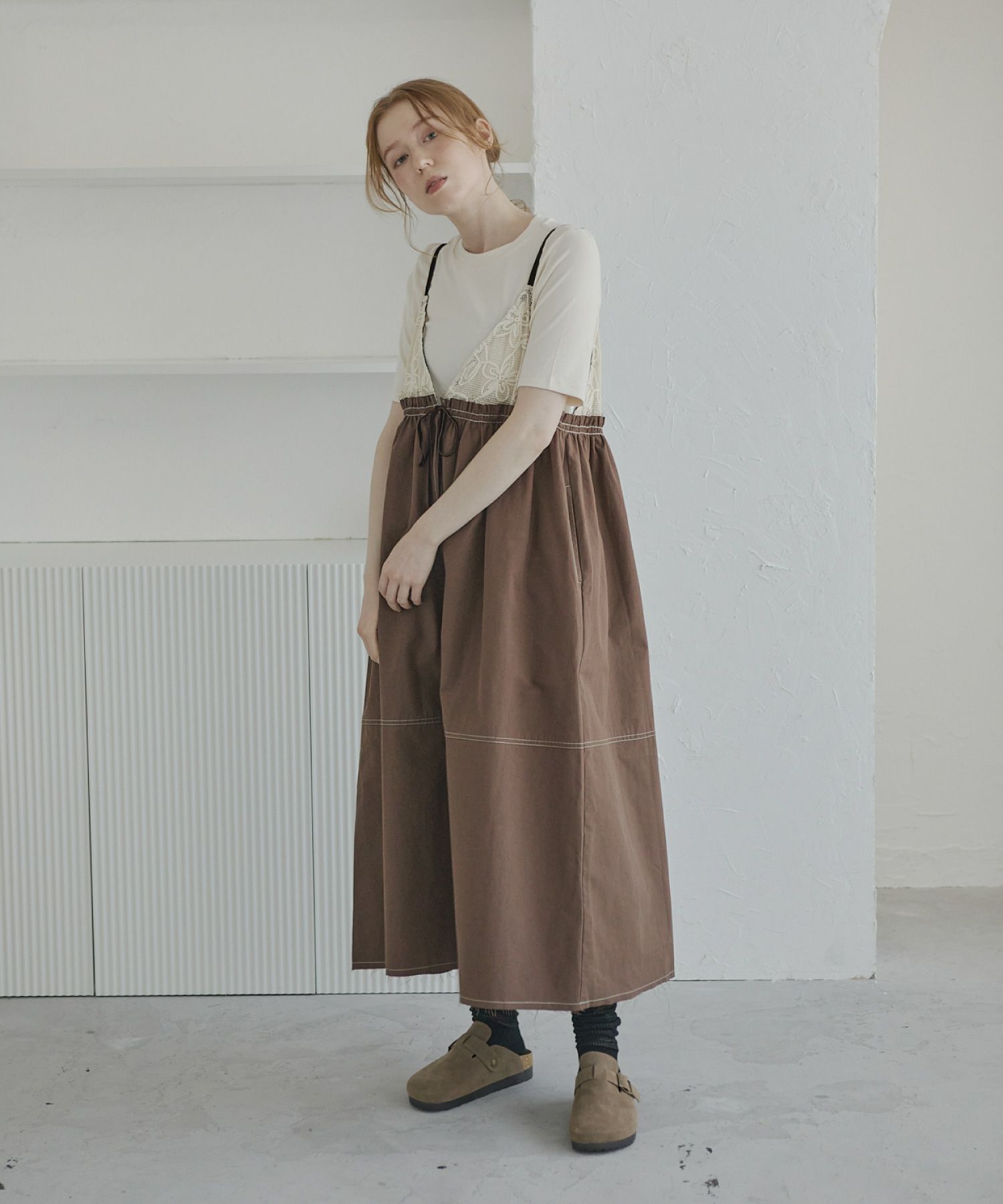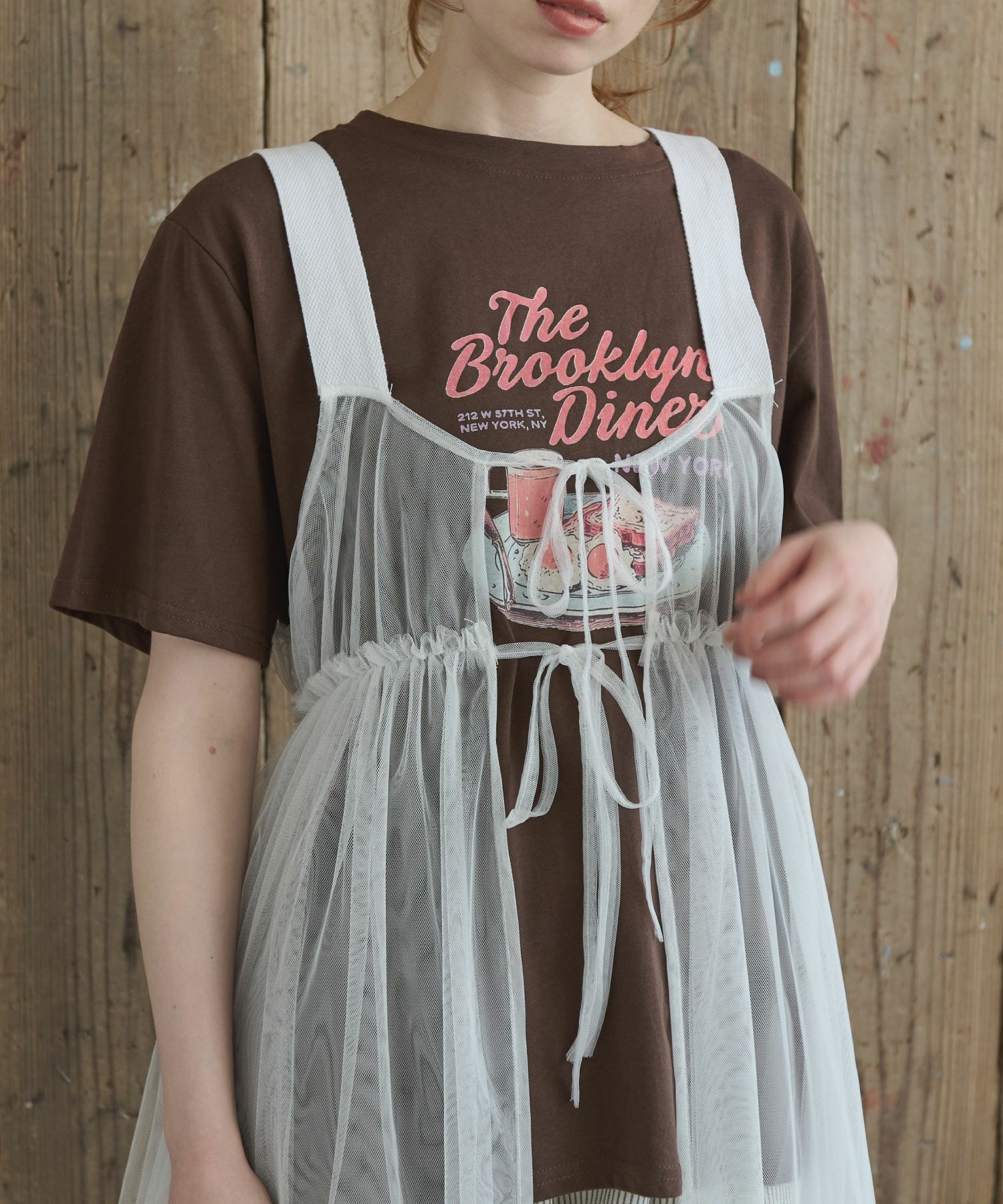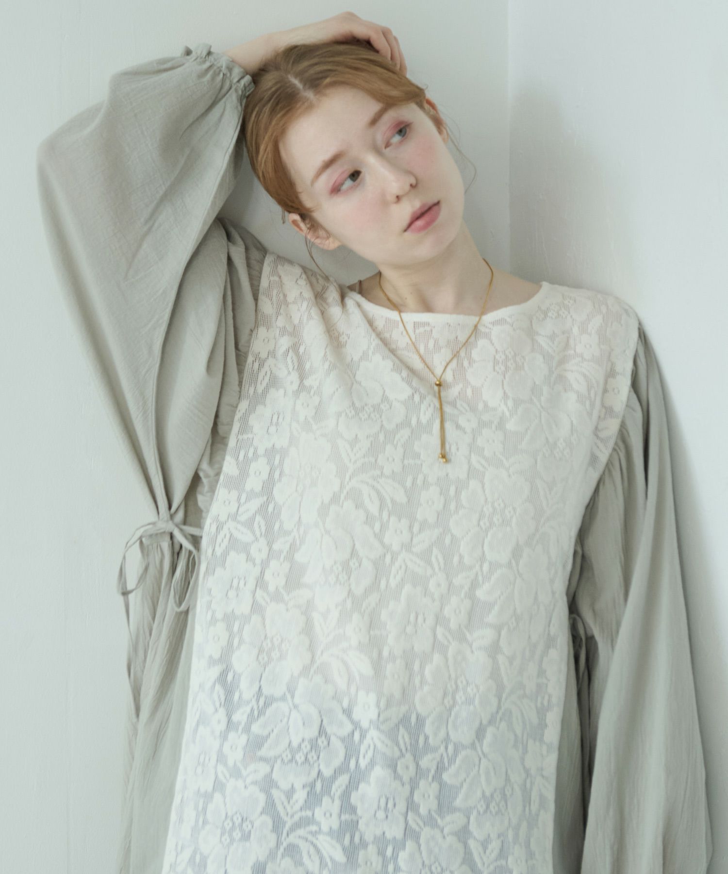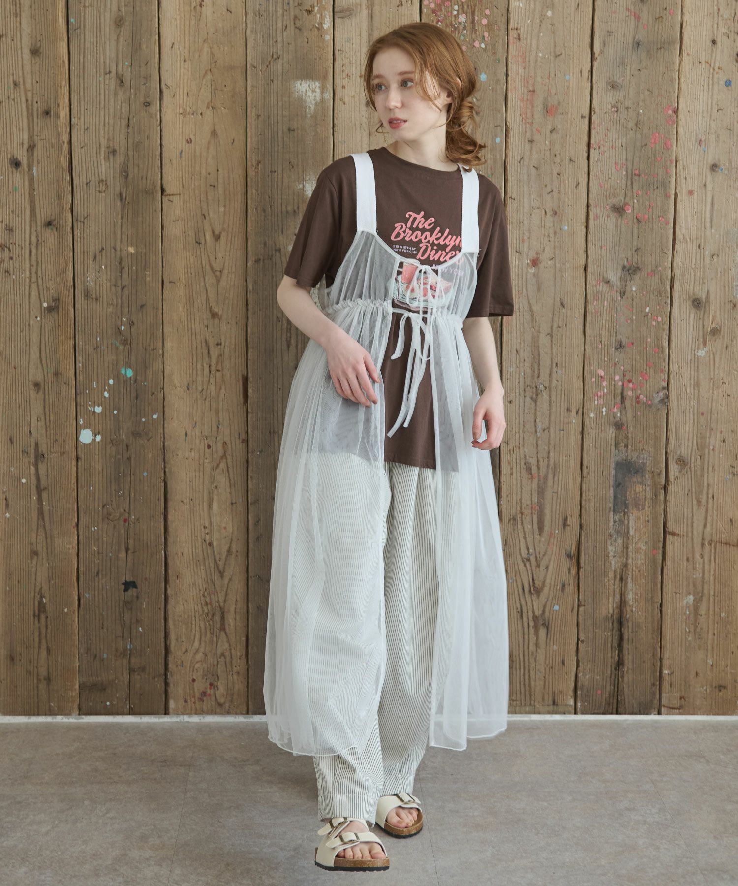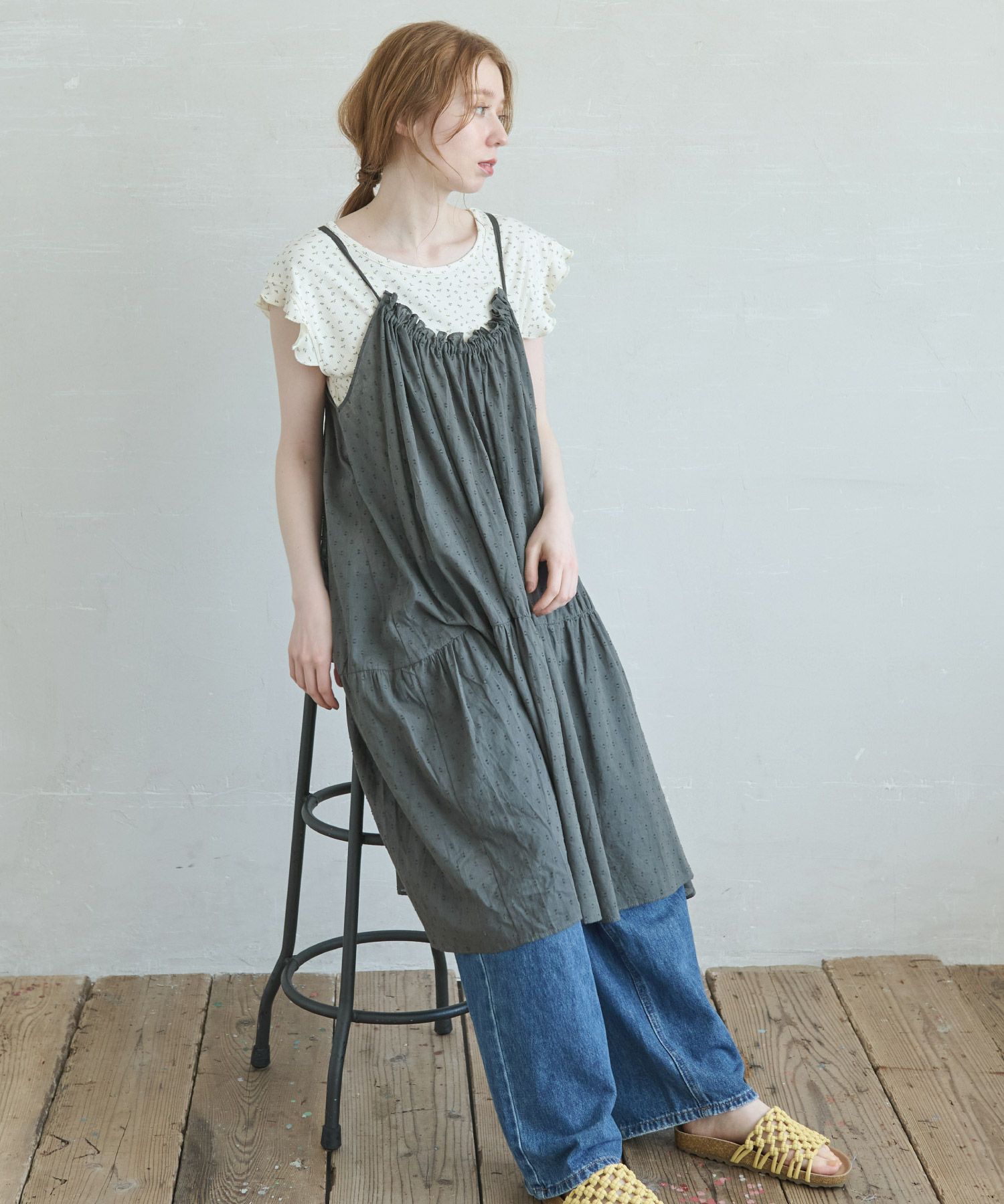フラワーメッシュトップキャミワンピース[c2R3786]
