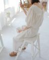 サイドポケット付きで実用性があるのも魅力的。 肘にかかる絶妙な袖丈とふんわりとしたボリュームスリーブで気になる二の腕をカバーしてくれるのも◎ ウエストは一周ゴム仕様でストレスフリーな着心地が叶います。