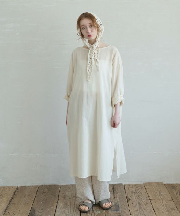【ゆったりとしたシルエットと軽やかな素材感がナチュラルなコットンワンピース】