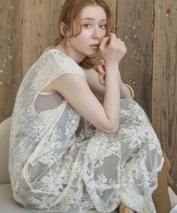 【夏に映える繊細な総レース素材が上品で華やかなレイヤードワンピース】