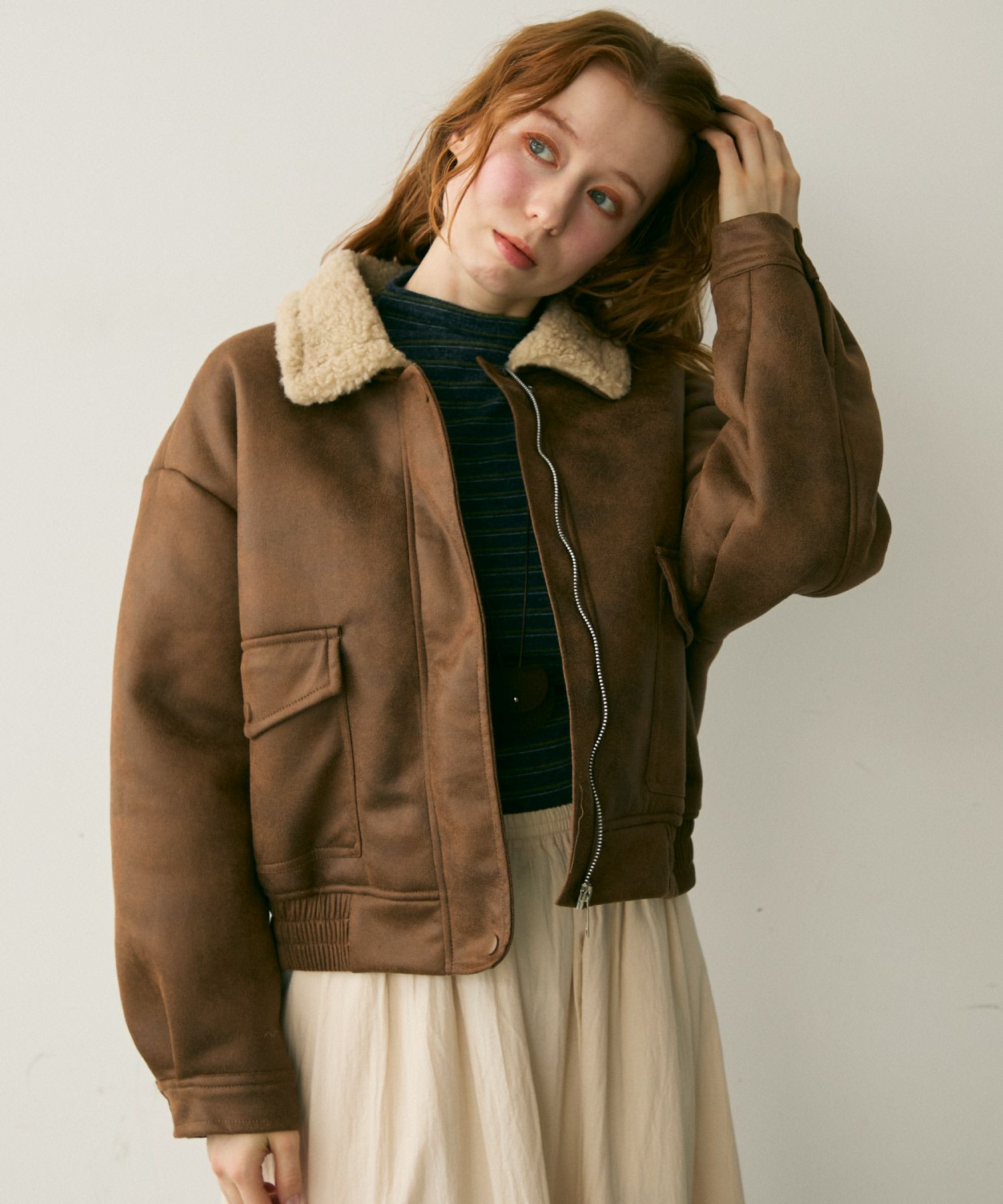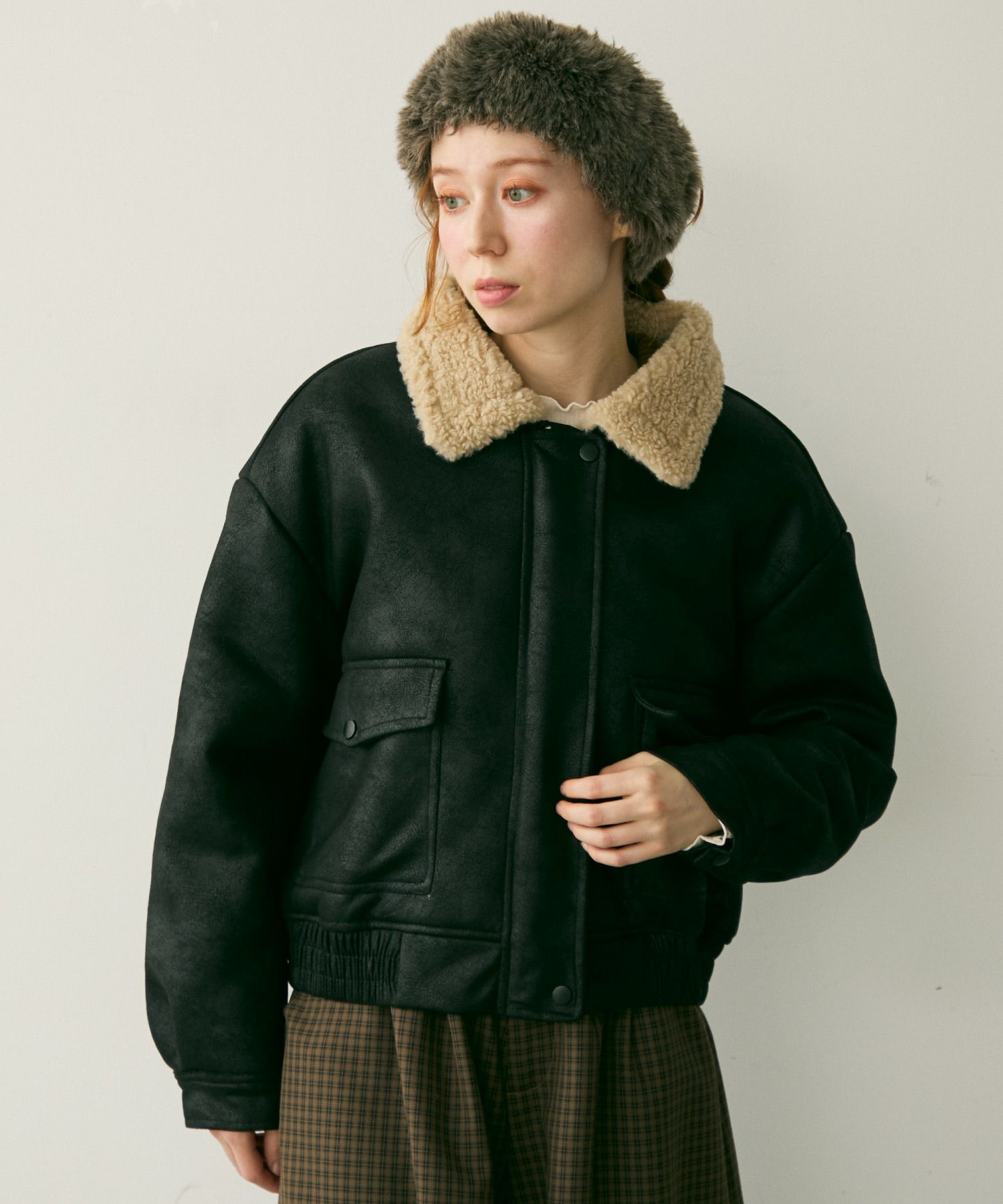 ボアカラーフェイクレザージャケット[c8k3705b]
