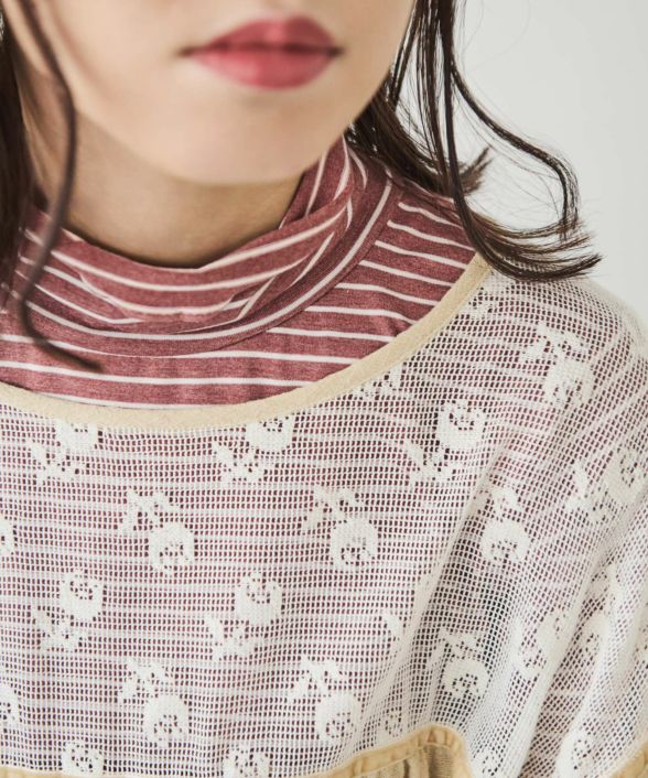 秋冬らしい濃いめカラーのボーダーTシリーズ。 同じ生地を使用しラウンドネックとタートルネックで展開しています。 白が混ざったようなメランジ調のニュアンスカラーが大人っぽくカジュアルな風合いに。 締め付け感のないタートルネックでストレスフリーな着心地が叶います。 衿ぐりや袖口はカジュアルすぎないようにメロウフリルでアクセントを入れています。 トップスとしてのメイン使いはもちろん、インナーとしてワンピースやニット、スウェット等とのレイヤードスタイルにも活躍の1枚です。 幅広いアイテムと着回しが効くのでデイリー使いにぴったりのアイテムです。