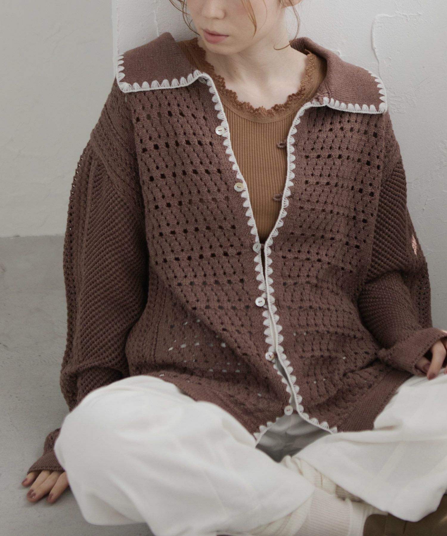 メランジシャギーオーバーニットカーディガン[c1k3740]