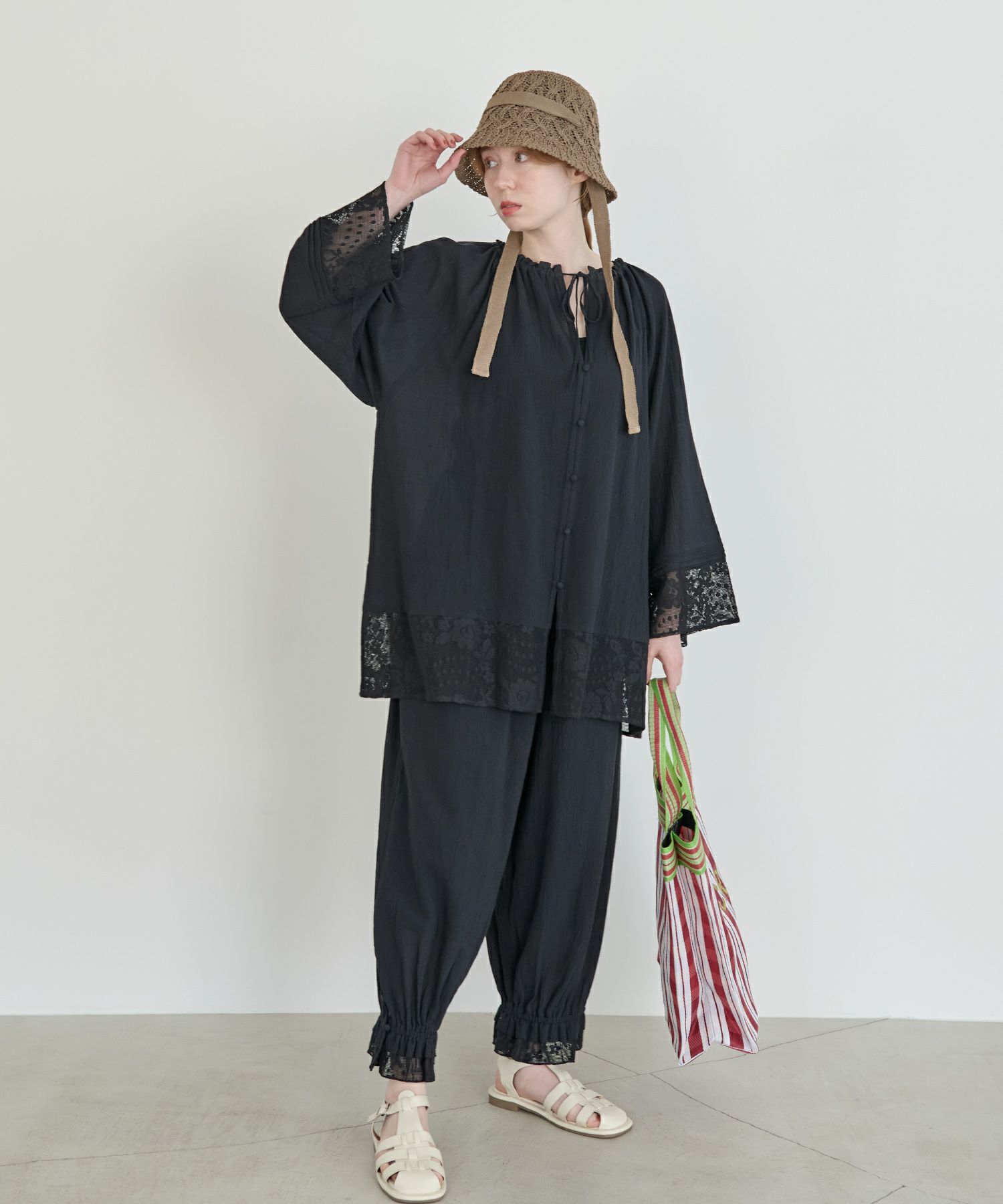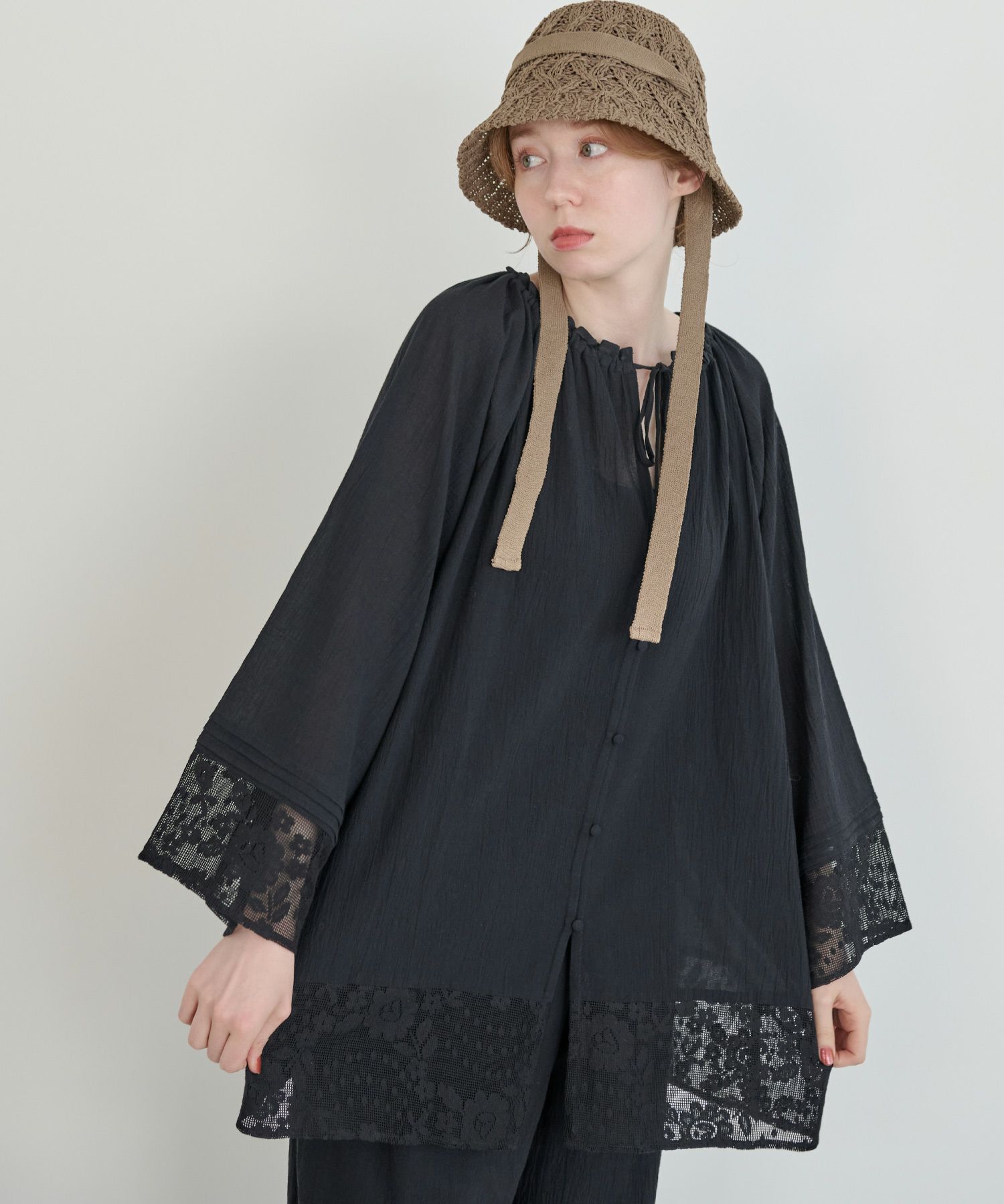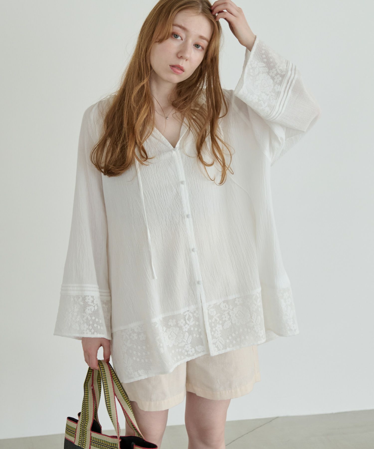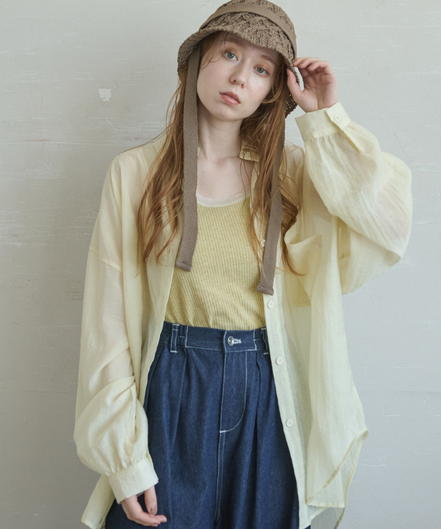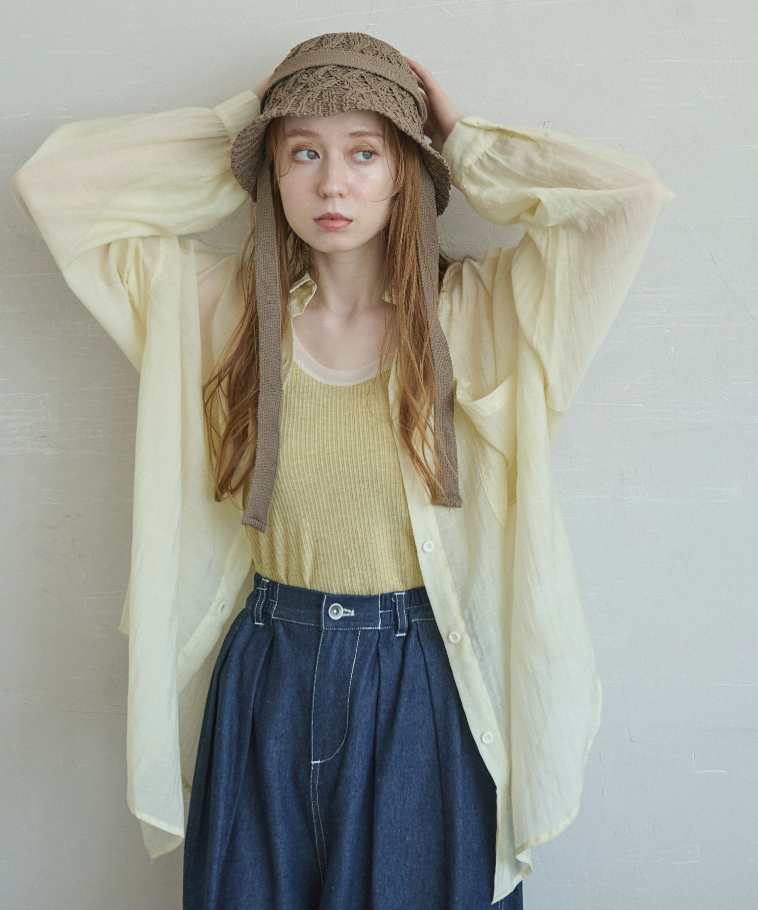 ハーフスリーブシアーオーバーシャツ[c1R3609]