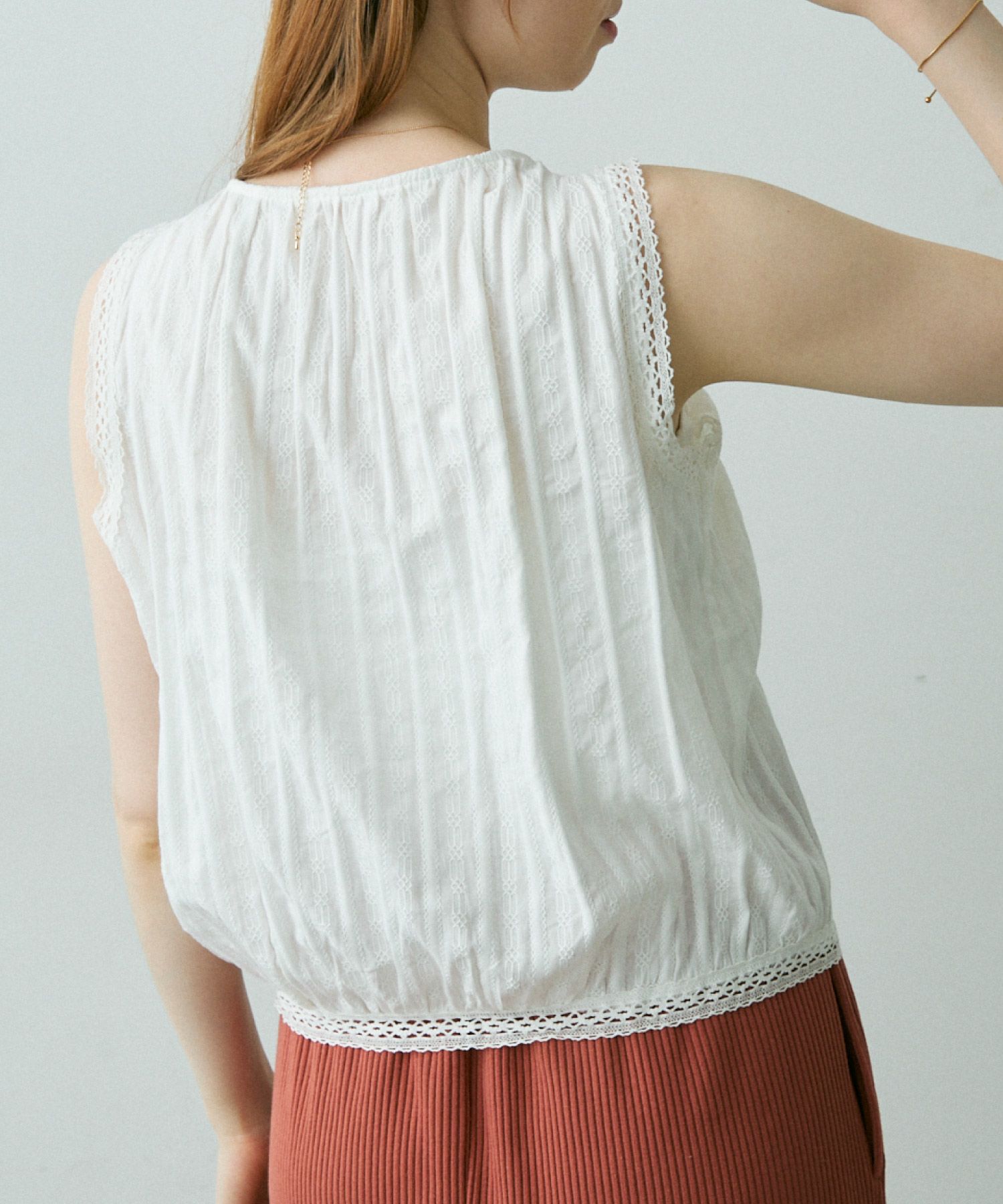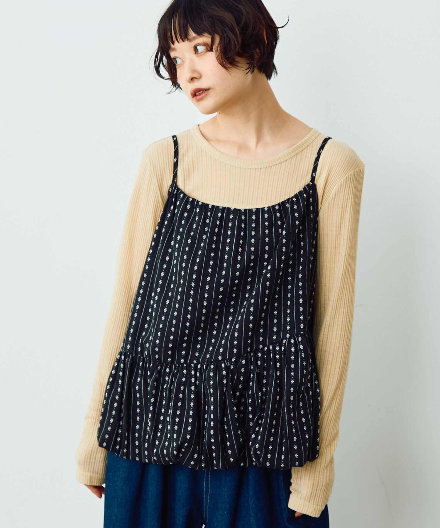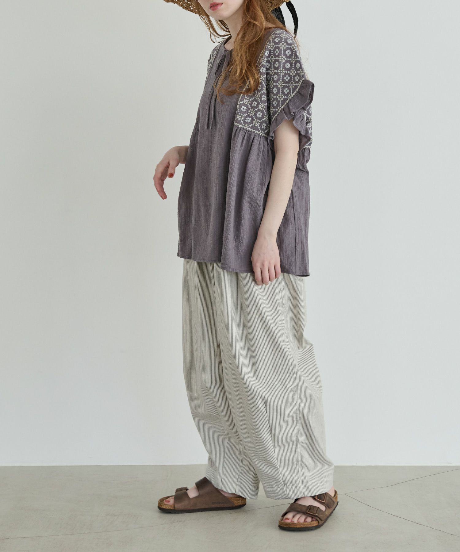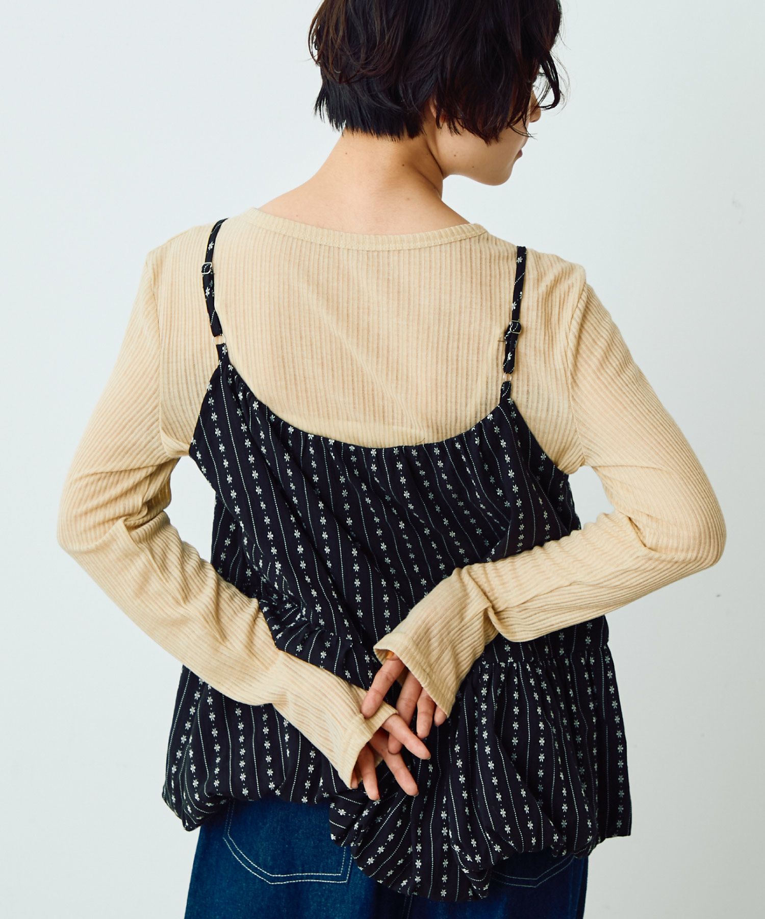 ストライプシャーリングギャザーブラウス[c1k3619b]