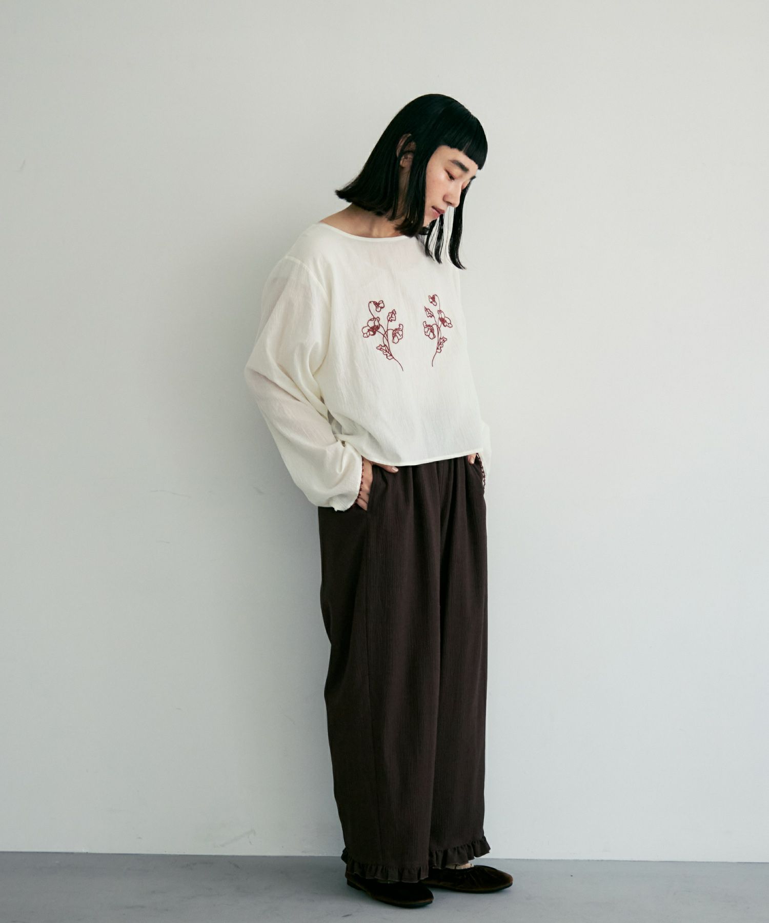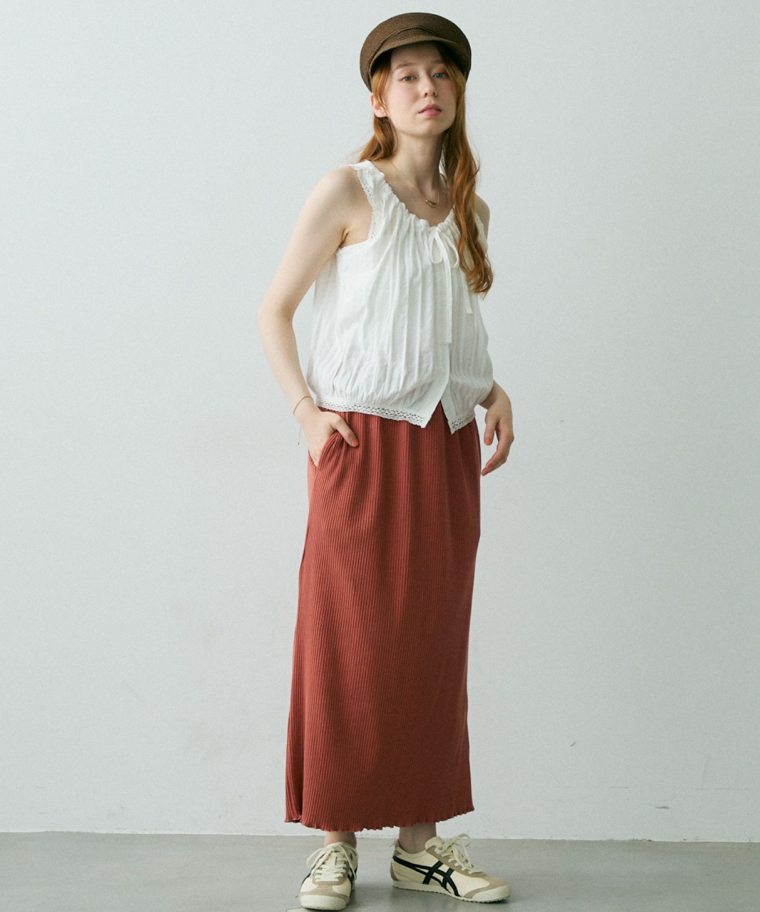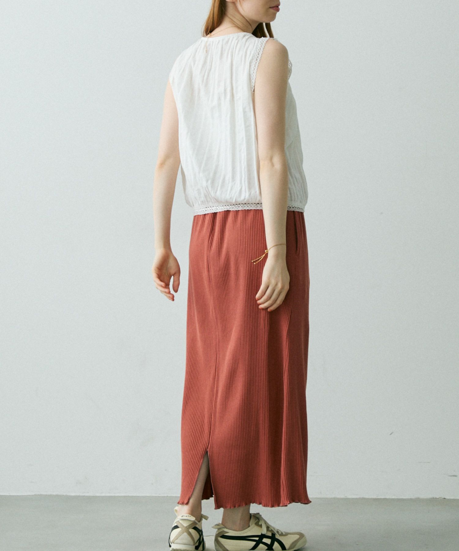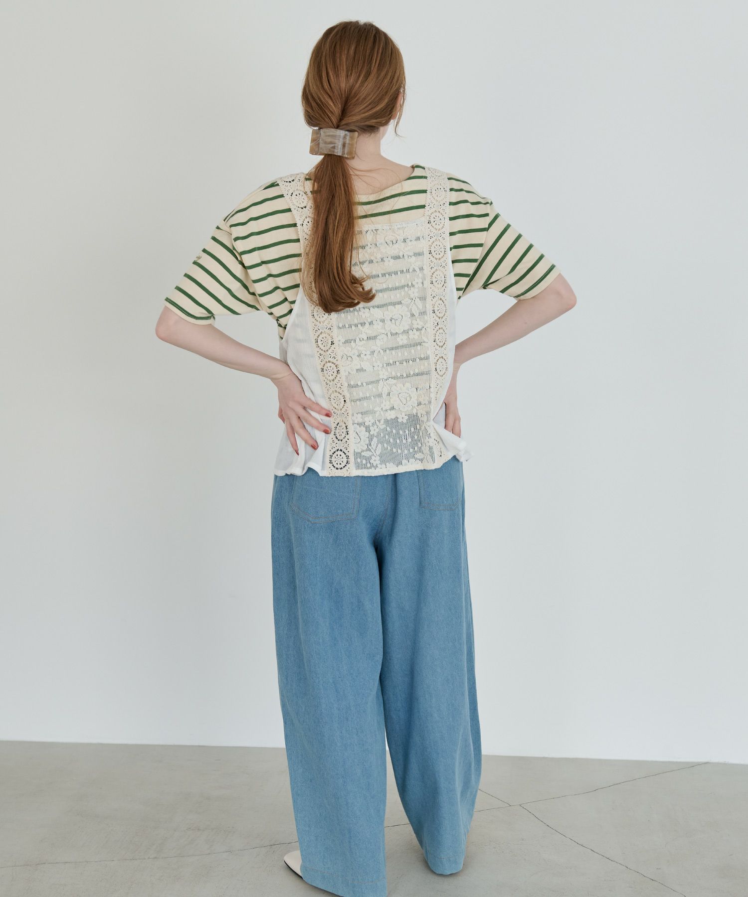 ストライプシャーリングギャザーブラウス[c1k3619b]