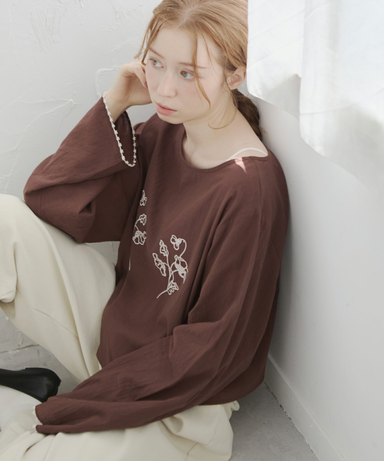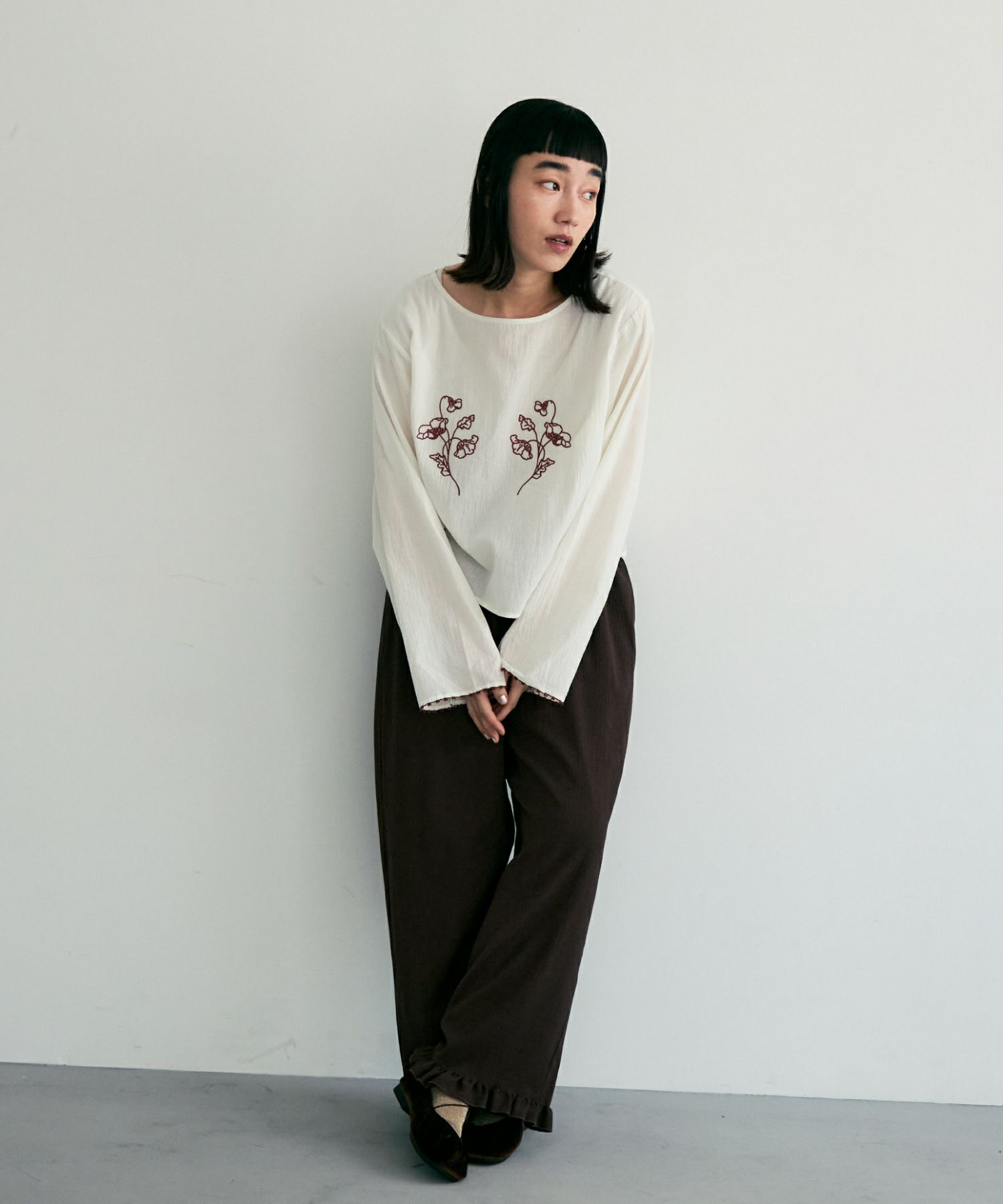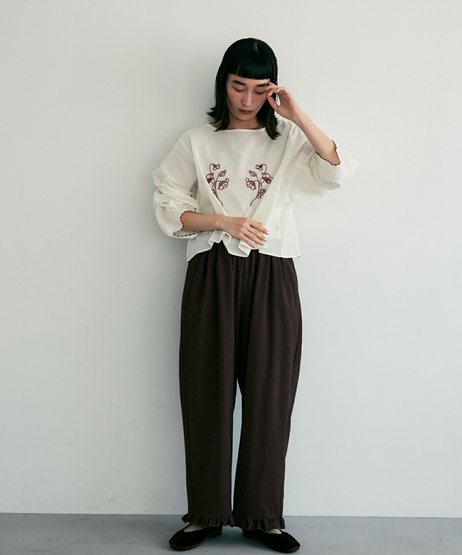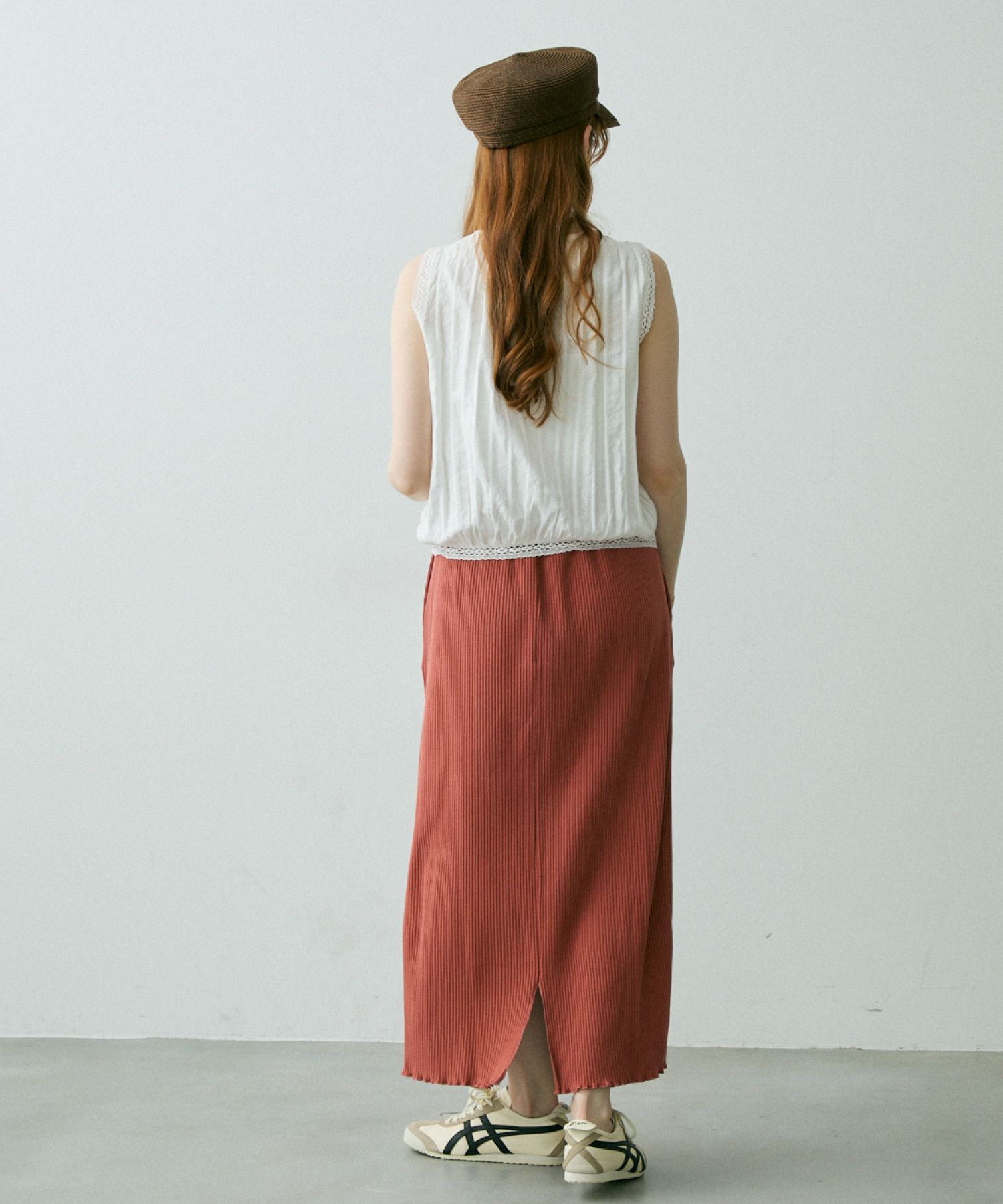 ストライプシャーリングギャザーブラウス[c1k3619b]
