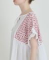 ・袖フリルデザインでフェミニンな要素をプラス ・サイドに胸下ギャザーでふんわりシルエットに ・切り替え部分のレースがさりげないポイント ・リボンデザインのあきは前後2wayで着用できます ・コットン素材の楊柳生地、さらっとした肌触りで夏でも涼しく着て頂けます